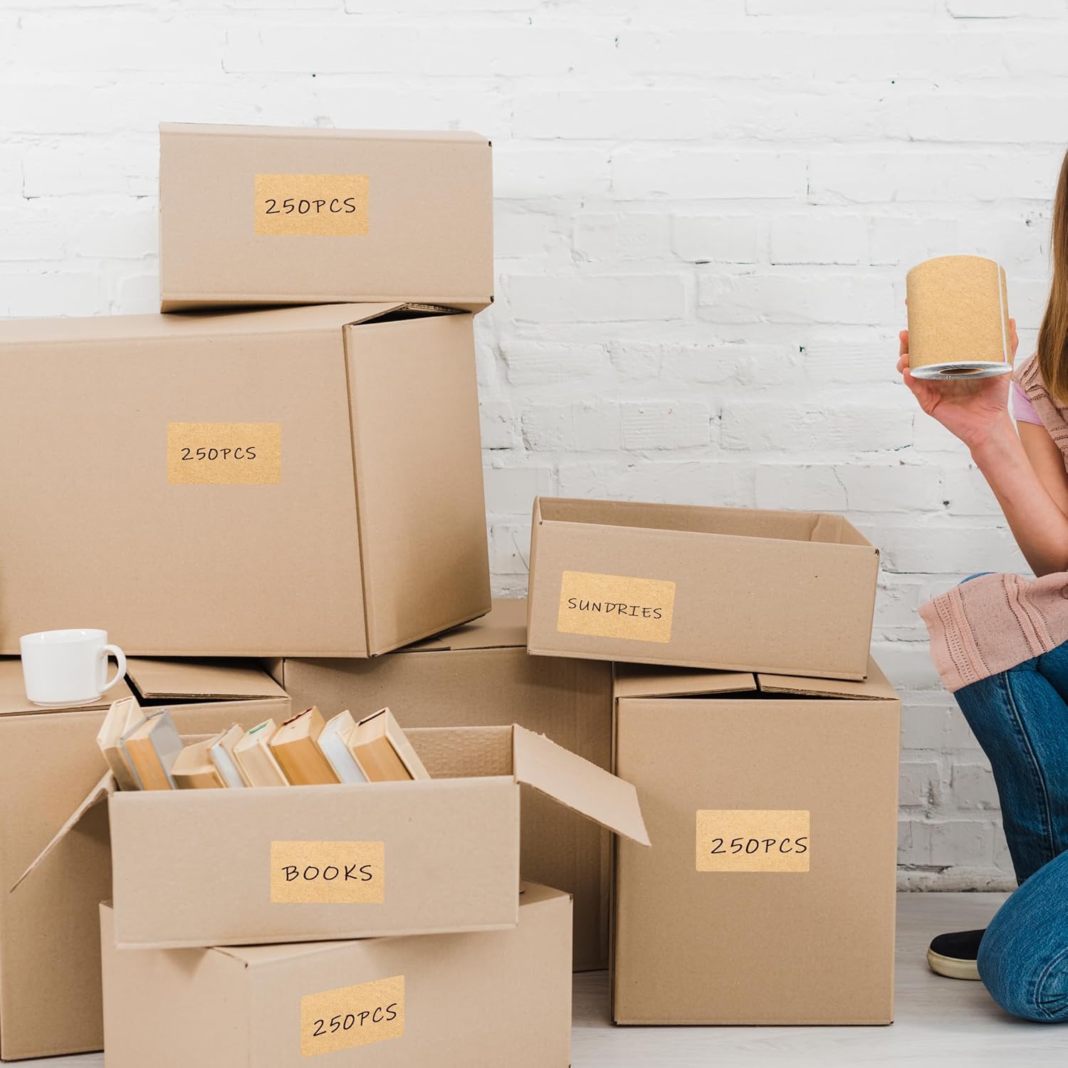 3 x 5 Inch 250Pcs Rectangle Color Coding Stickers,Strong Adhesion Easy to Write Label for Moving,Box Organization,Inventory,Business,Kraft Paper