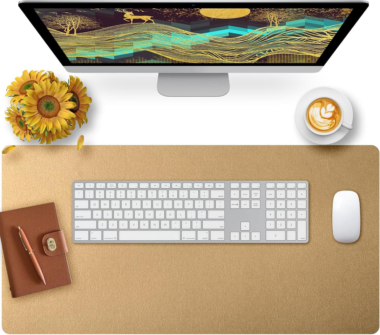 Bloss Gold Desk Mat, PU Large Mouse Pad for Desk, Desk Matt for Desktop, Desk Pad Mat Waterproof, Computer Mat for Office/Home/Decor/Desk Protector(31.5 x 15.7 Inches)