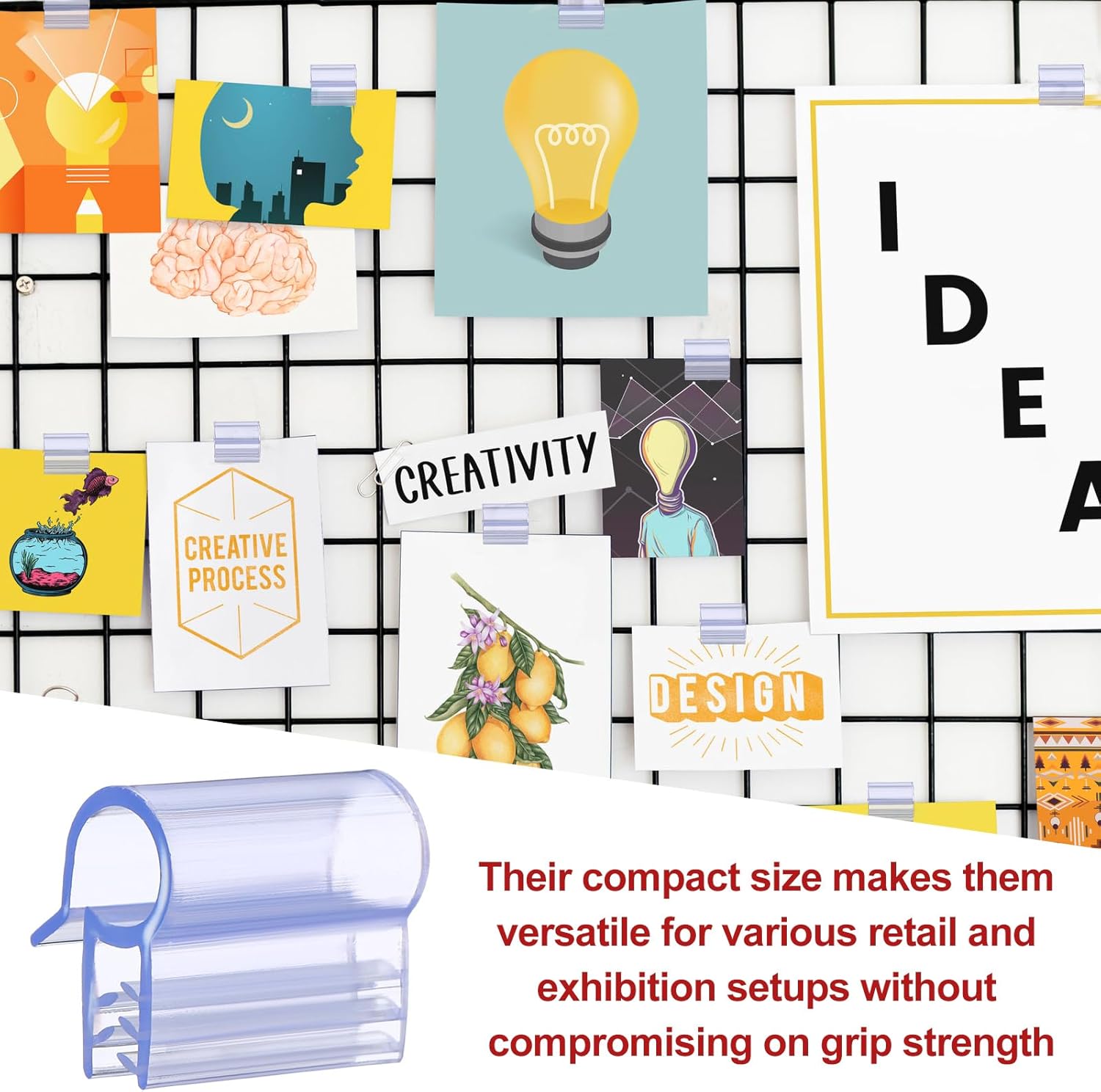 - Versatile Size for Diverse Needs: measuring approximately 1 inch wide by 3/4 inch high, these panel wall clips are engineered to fit grids with wire up to 3/8 inch in diameter; Their compact size makes them versatile for various retail and exhibition setups without compromising on grip strength