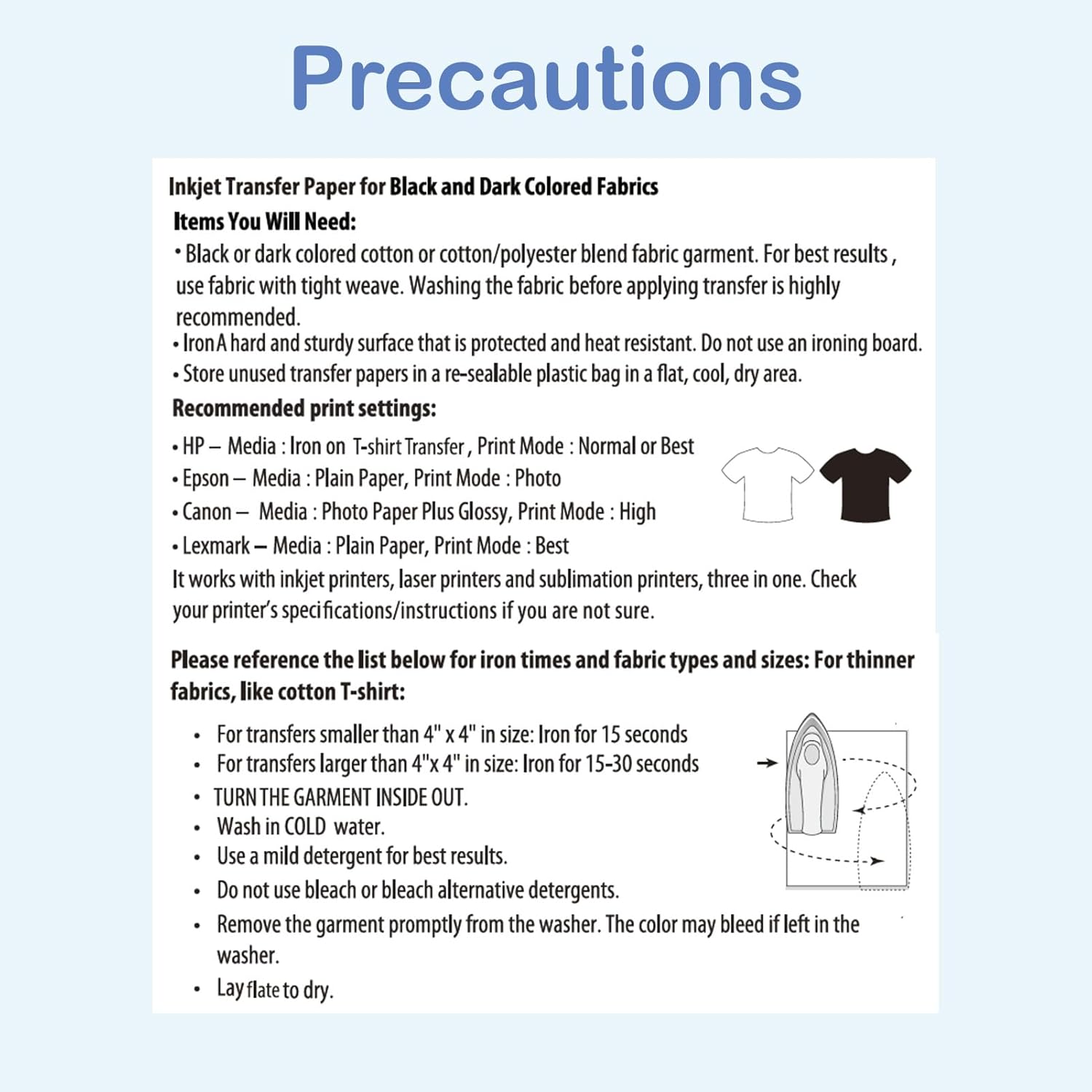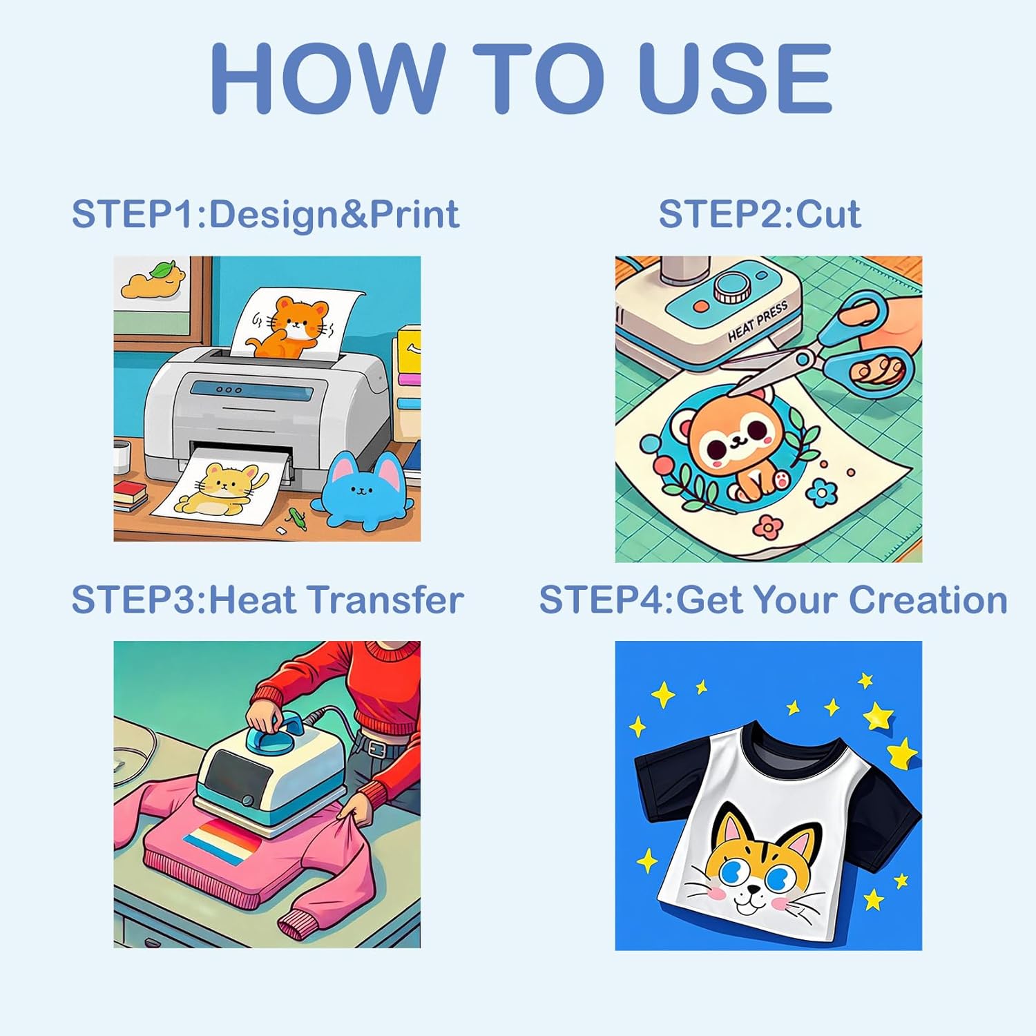 - 【Premium Quality】: It could be printed vivid and vibrant, clear patterns, in focus, with realistic colours. Its bright colors and saturated images, which can reach photo quality. Easy to transfer and use. It is durable enough to withstand repeated washes without fading, cracking, blurred or peeling.
