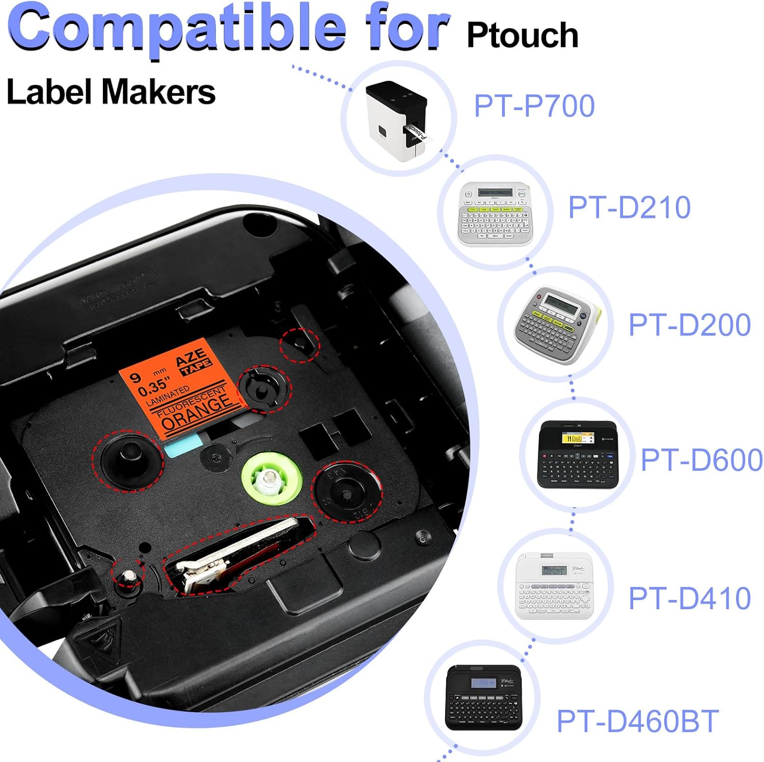 - Package Included: 2 pack KCMYTONER compatible for Ptouch TZe-B21 TZ-B21 TZeB21 TZB21 laminated label maker tape; color: black text on fluorescent orange tape; size: 9mm (3/8 inch) x 5m (16.4 feet).