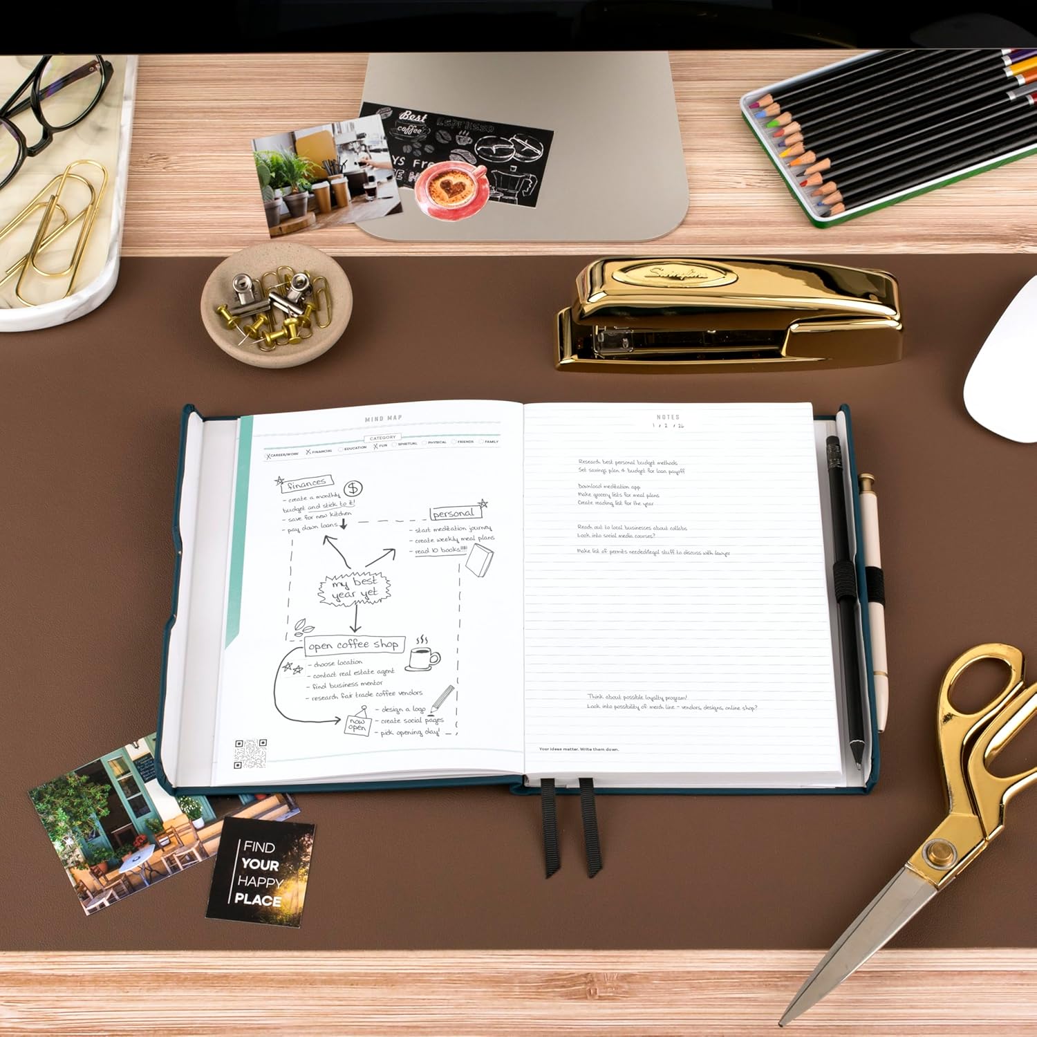 - DO IT ALL – It’s more than just a planner. Create a vision board and mind map, set and track goals, and organize your plans all in one place.