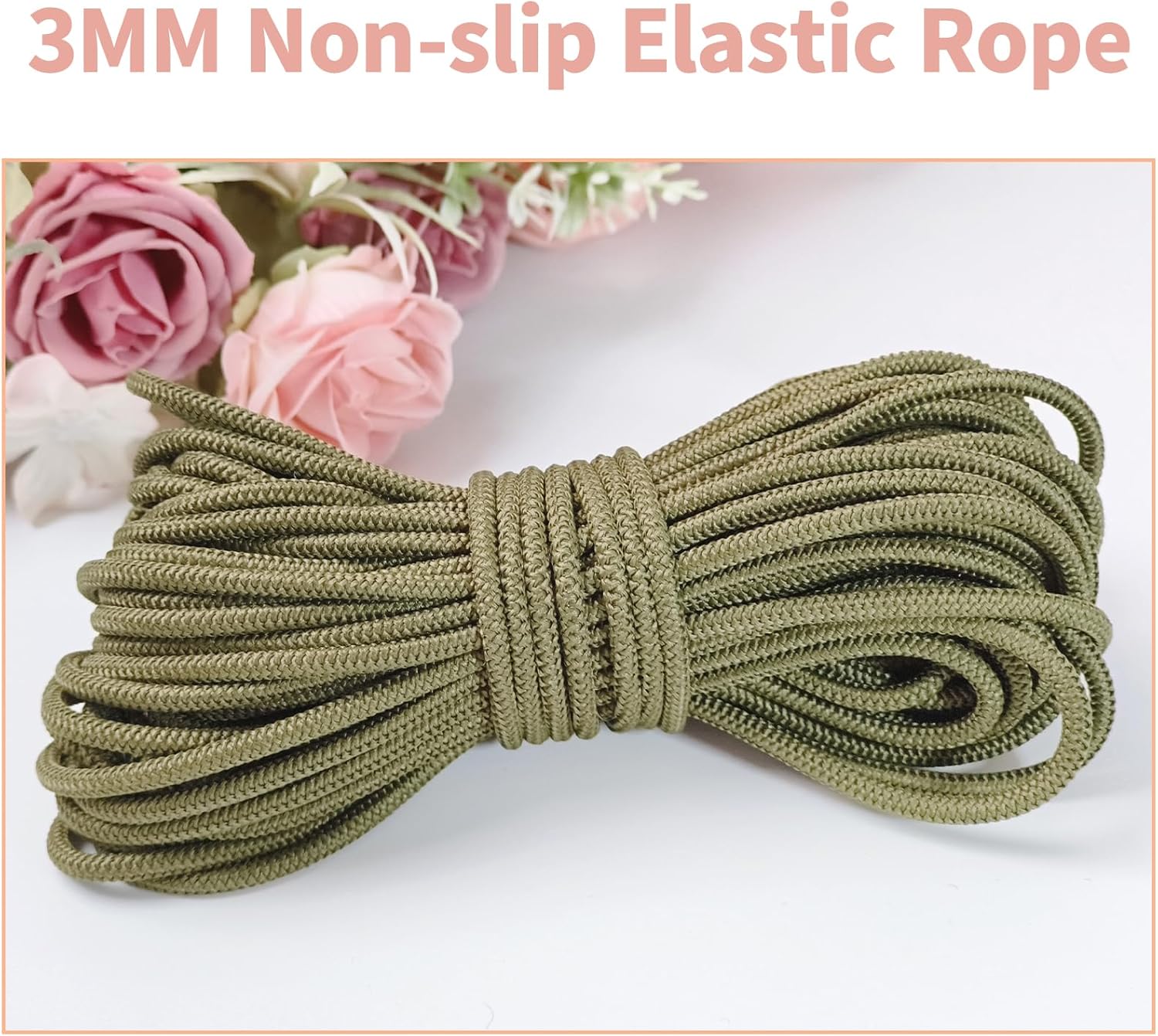 1/8 inch Non-Slip Elastic Band -3mm 15 Yards Soft Elastic Cord Stretch String Braided Thread for Sports Gear, DIY Crafts, Hair Bands, Shoelaces,Apparel Making & Camping Tie Down (Olive Green)