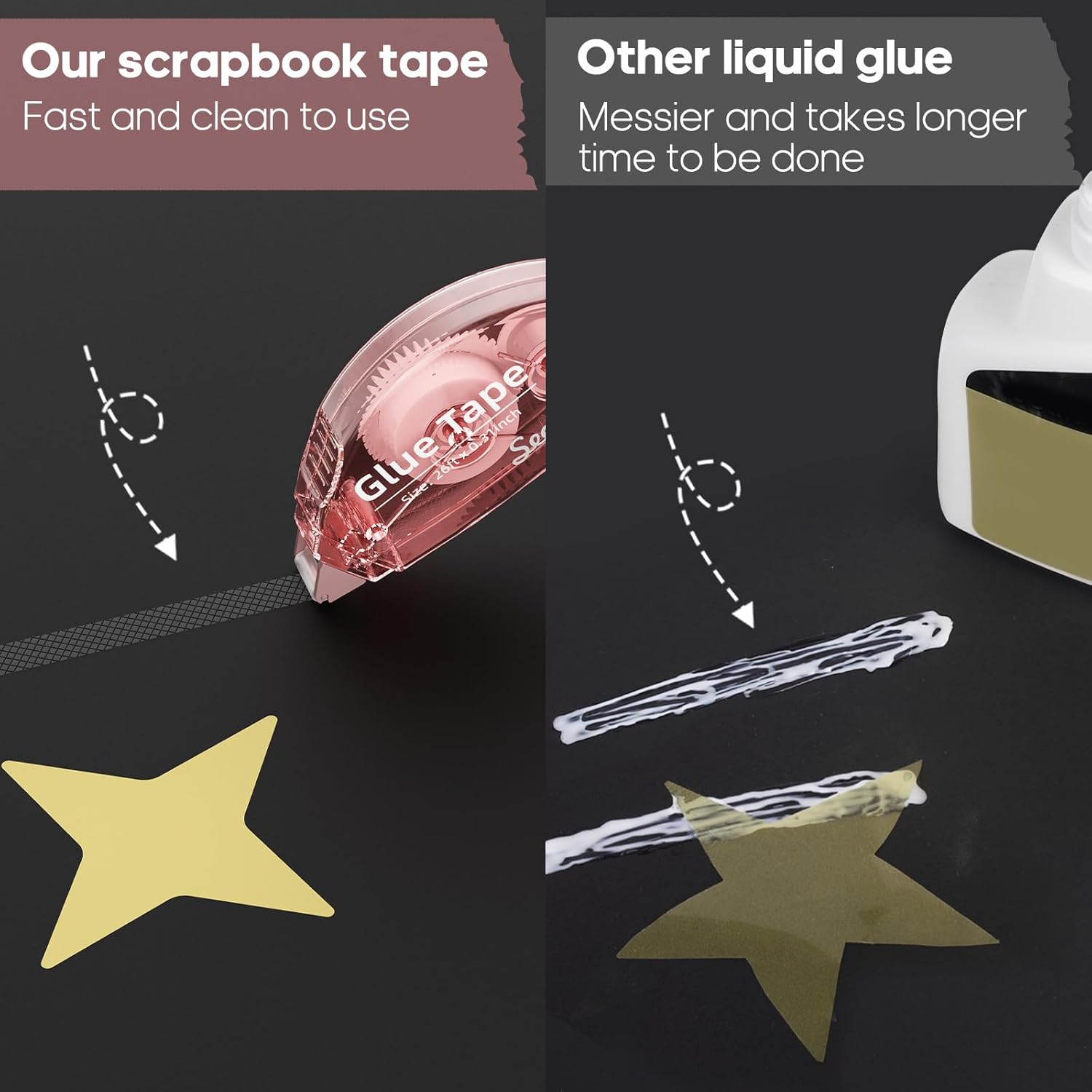 - Mess-free & Fast: Different from the ordinary double sided tape or liquid tape, Secopad glue tape won't cause any mess and you don't have to wait for the glue to dry. It takes only a few seconds to finish the work