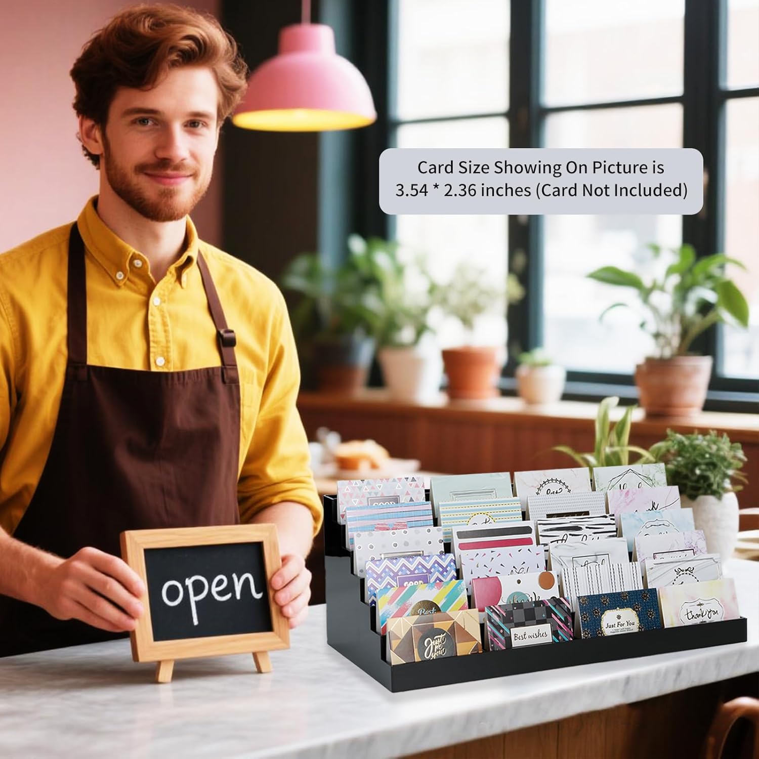 - LARGE CAPACITY - Each desk card holder measures approx. 15.55 x 7.72 x 6.2 inches/ 39.5 x 19.6 x 15.75 cm and each slot measures approx. 3.62 x 0.94 x 0.98 inches/ 9.2 x 2.3 x 2.5 cm, each slot can hold about 60 pieces of business cards (depending on the thickness of the cards), which can help you to organize your cards and make your desk clean and tidy. This make it becomes a great option for businesses that frequently exchange cards with clients, or for individuals who attend networking events.