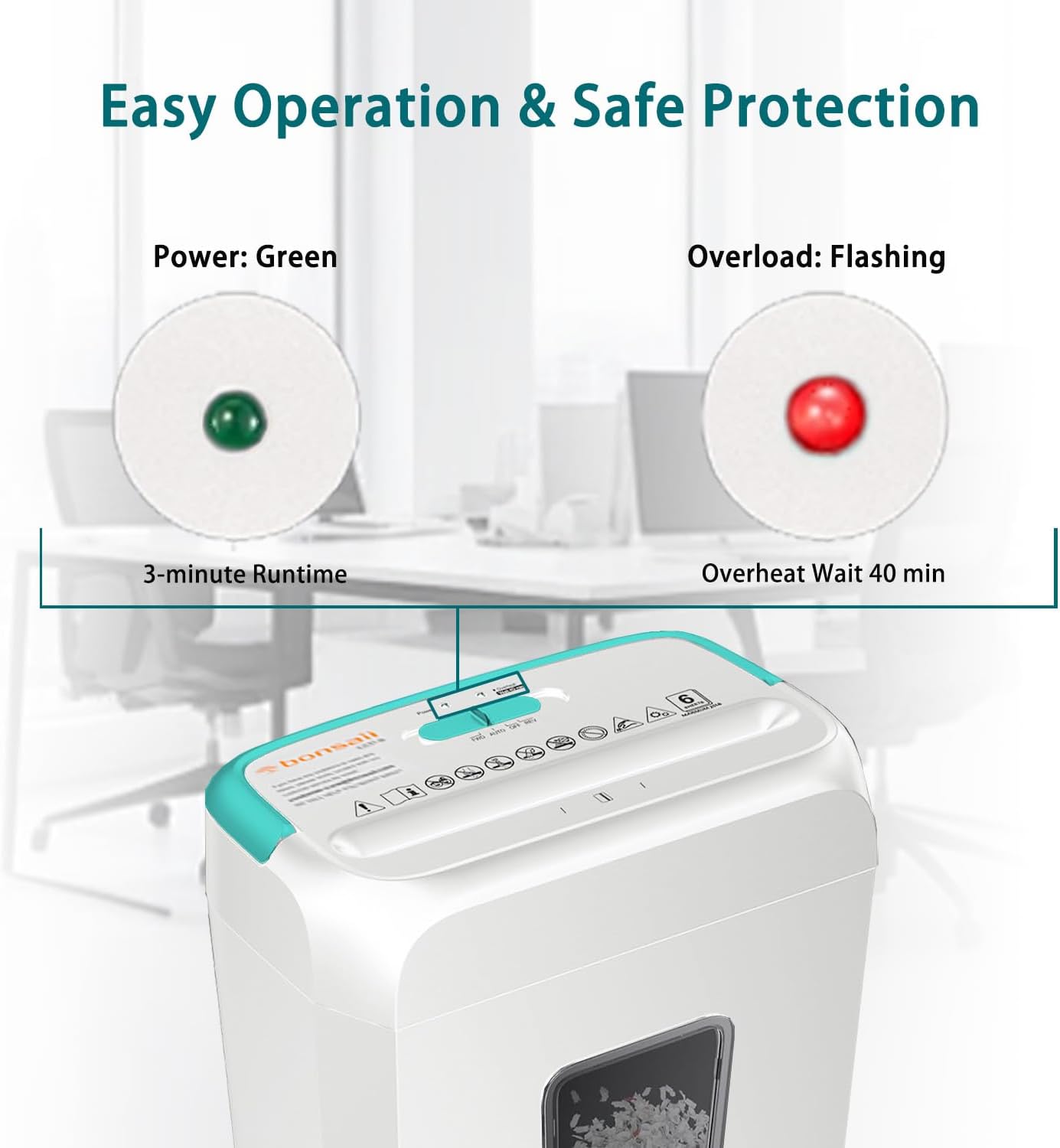 - Easy Operation & Safe Protection: Auto start/stop and manual-reverse functions prevent paper jams. Overheat protection prolongs the shredder's lifespan and ensures safety.