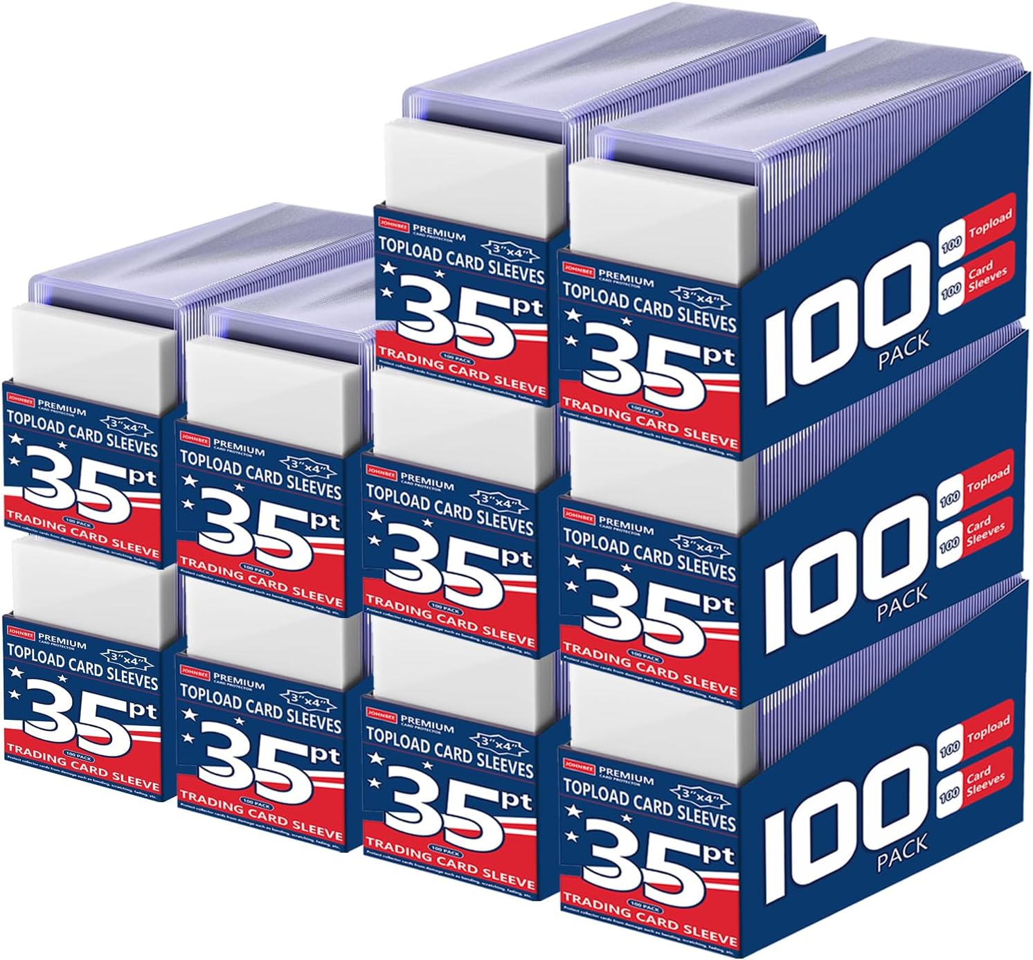 JohnBee Card Sleeves - 3"x4" Hard Plastic Top Loaders for Cards - Trading Card Sleeve & Baseball Card Holder - Premium Topload Ablum Photocard Holder for Sports, Game & Kpop Cards (1000Soft+1000Hard)