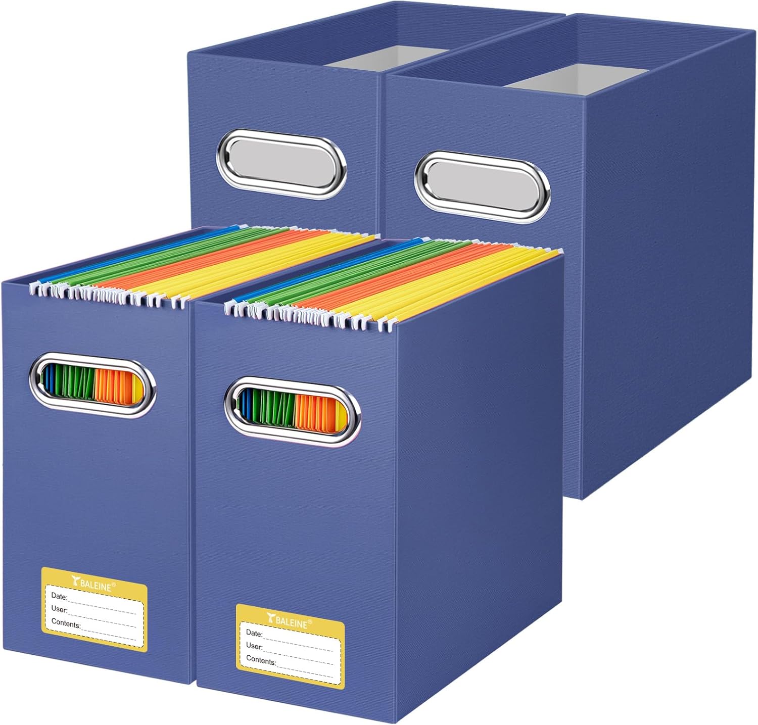 BALEINE File Organizer Box, Cardboard File Folder Organizer with Handle for Letter Size, Portable Collapsible Hanging Filing Box for Home Office Document Storage (4 Pack, Navy)