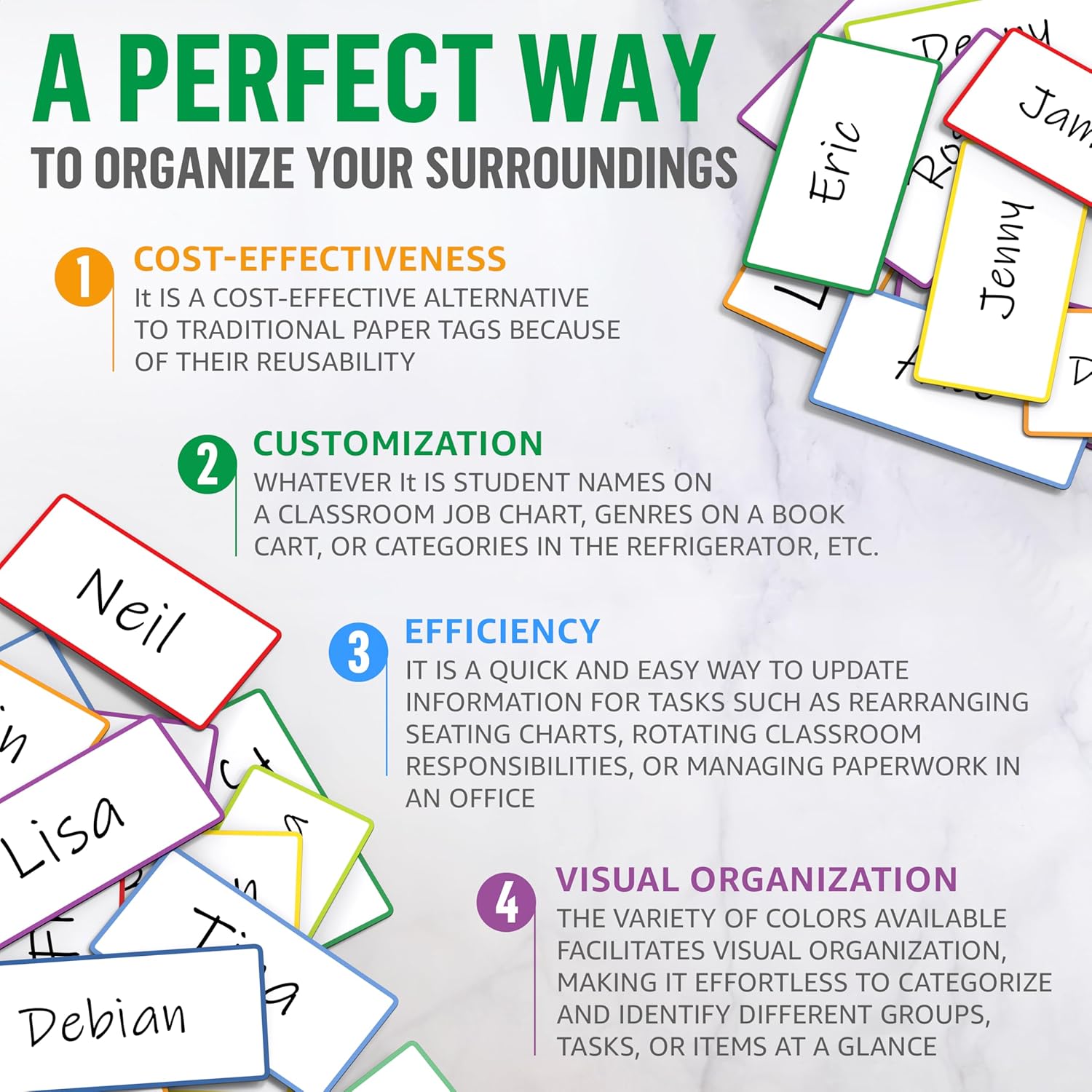 - Durable Material Quality - Our magnetic labels for dry erase board are crafted from premium material, ensuring durability and a smooth writing experience. The robust construction of each magnet label is designed for a long lifespan and constant reuse