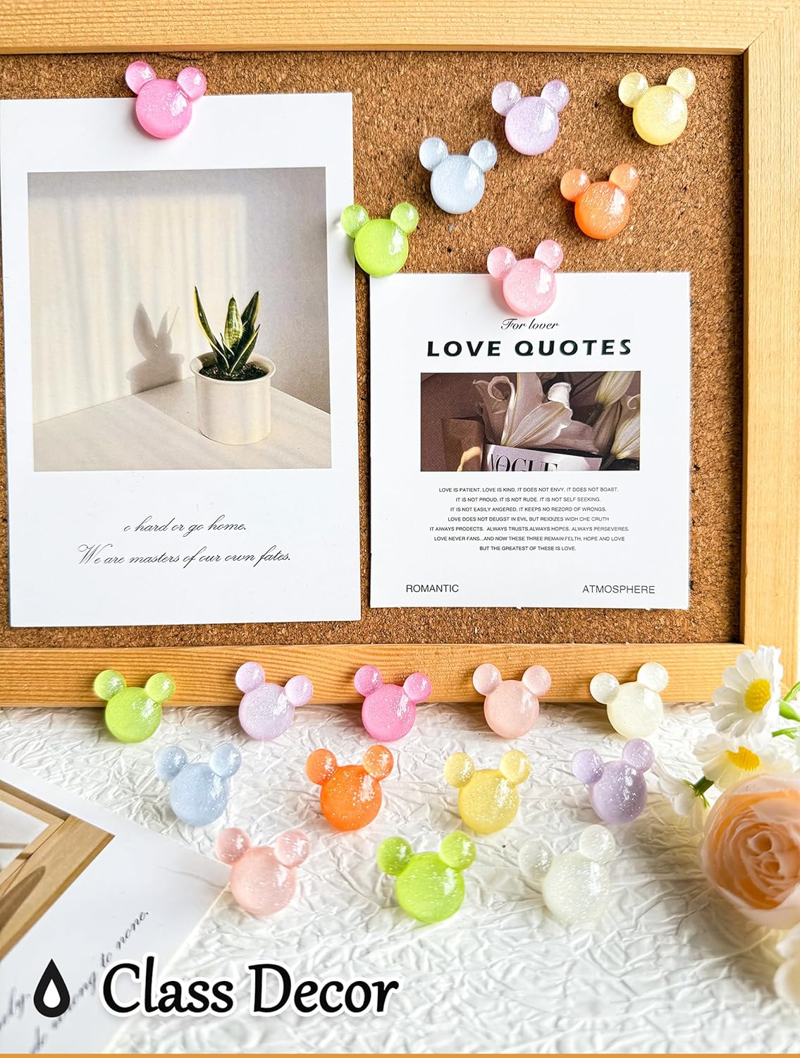 - Thumb Tacks: These decorative push pins are made of resin and tacks, will not deform and can be recycled for long time!