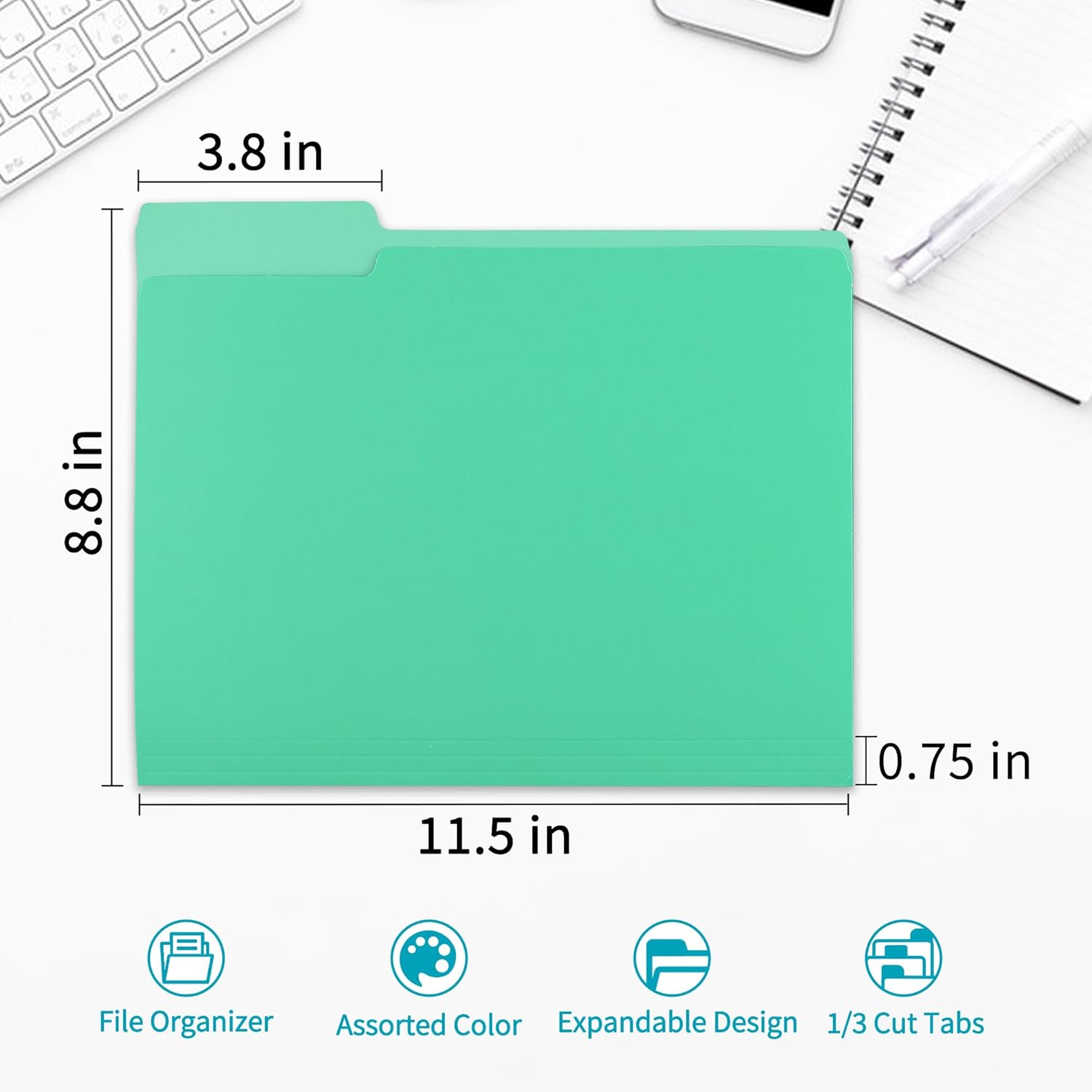 100 Packs Colored File Folders,Light Green File Folders,Two Tone Color File Folder 8.5 x 11 Inch,1/3 Cut Tabs Letter Size,Manila File Folders for Office,School and Home,Organization