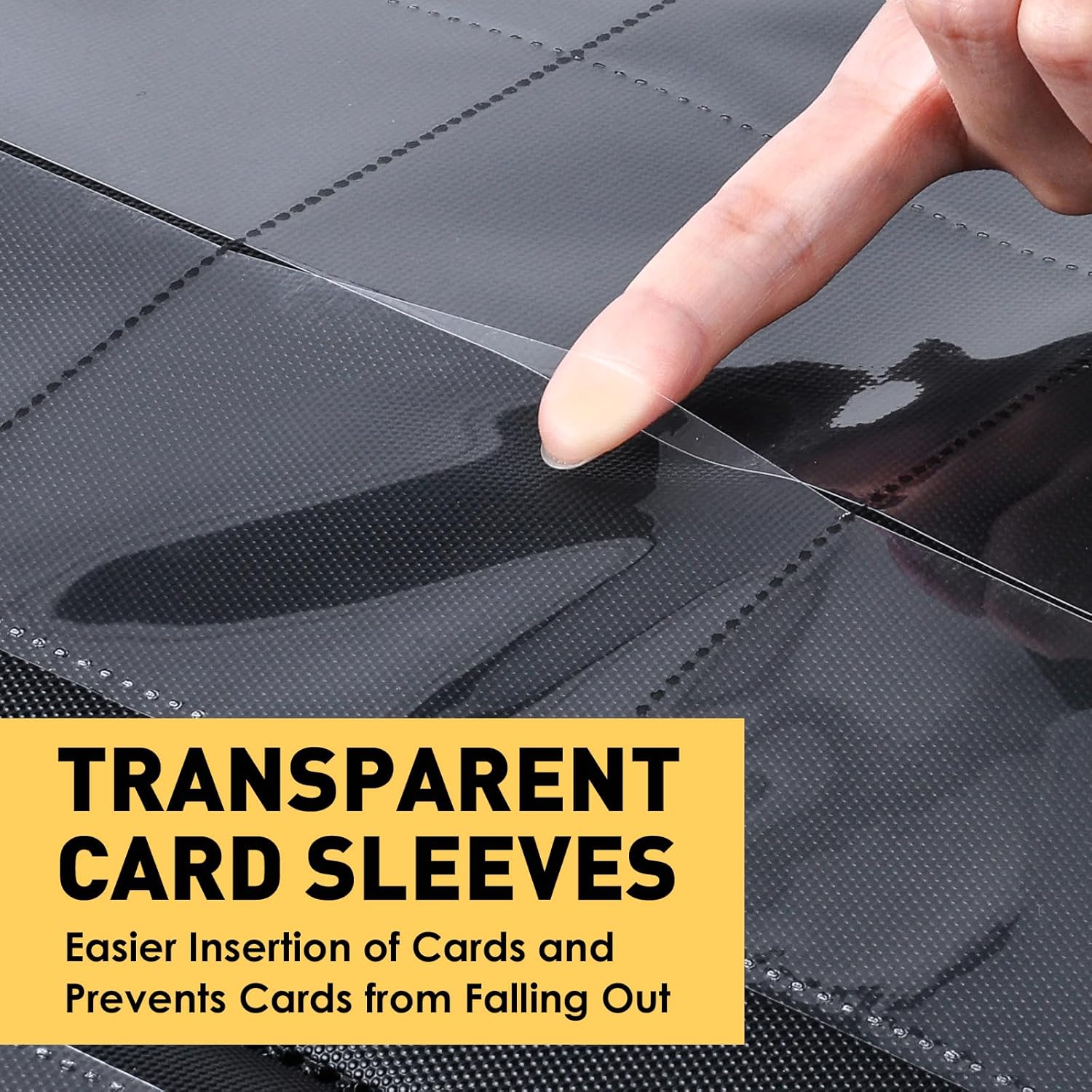- 【Side Loading Transparent Pocket】The card binder side loading design makes it easier to insert and remove cards,and there is no risk of card slipping when moving.Transparent card sleeves can clearly display and retrieve cards,preventing them from fading or turning yellow
