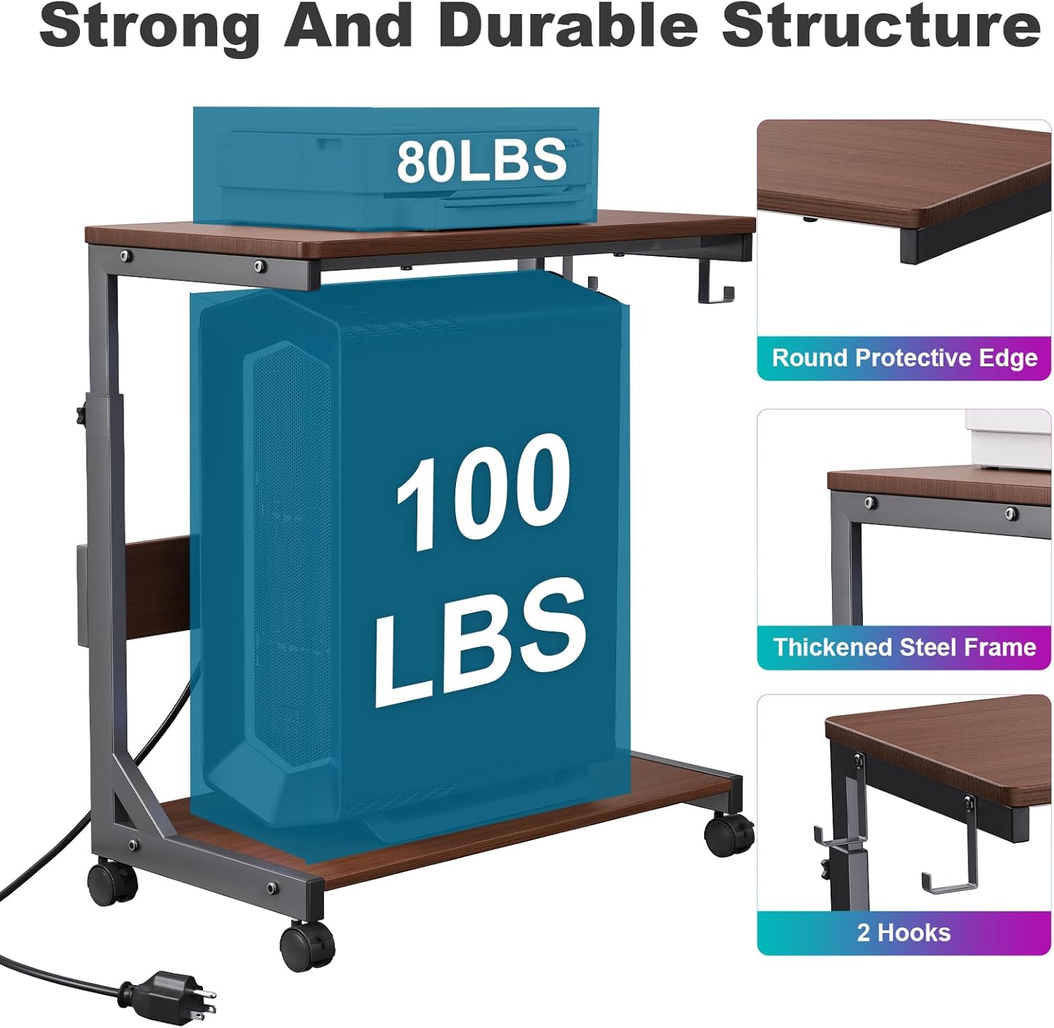 - Strong Construction: The top of this pc stand is made of thickened wood boards, which is anti scratch and rot resistant, and the thickened steel frame, which increases the overall load bearing capacity and stability, with a weighing capacity of up to 80 lbs. this product is stable, does not wobble and is not easily damaged or deformed