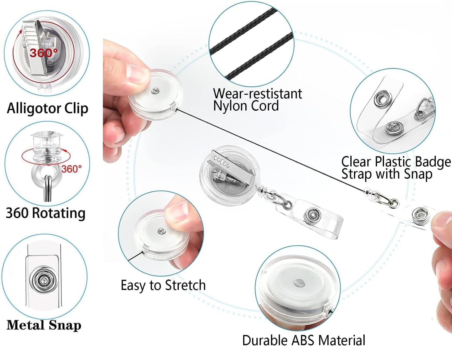- The badge reel comes with a rotating alligator clip that can rotate 360 degrees, this badge reel securely attaches to your clothing, providing a firm grip.