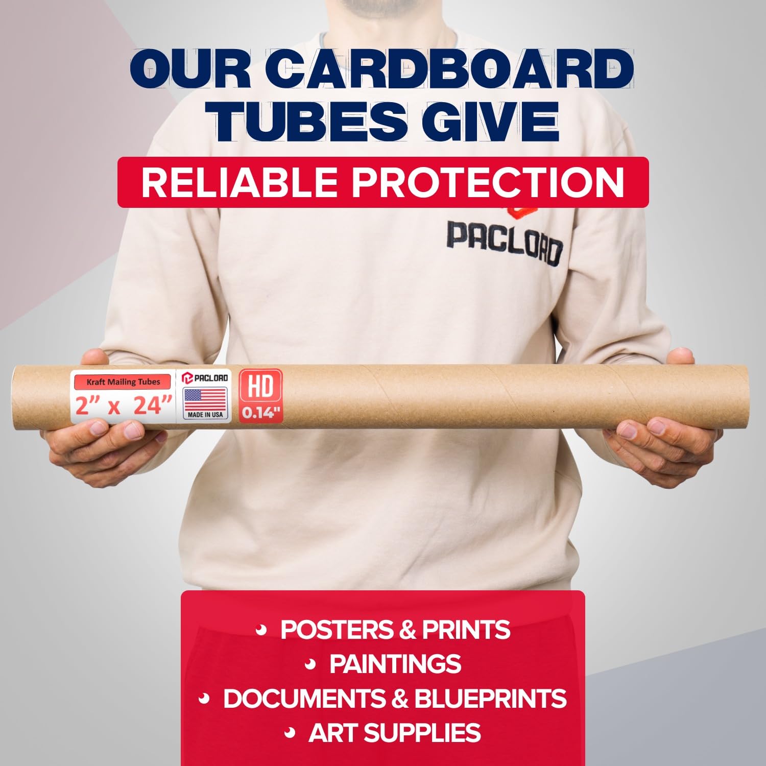 - Heavy-Duty Mailing Tubes: Paclord Reinforced Kraft Paper Mailing Tubes measure 24 inches high and 2 inches in diameter. These cardboard poster tubes are made of heavy-duty 0.14" thick brown kraft cardboard, 2x thicker than standard tubes. Designed to provide superior crush resistance for secure and reliable mailing