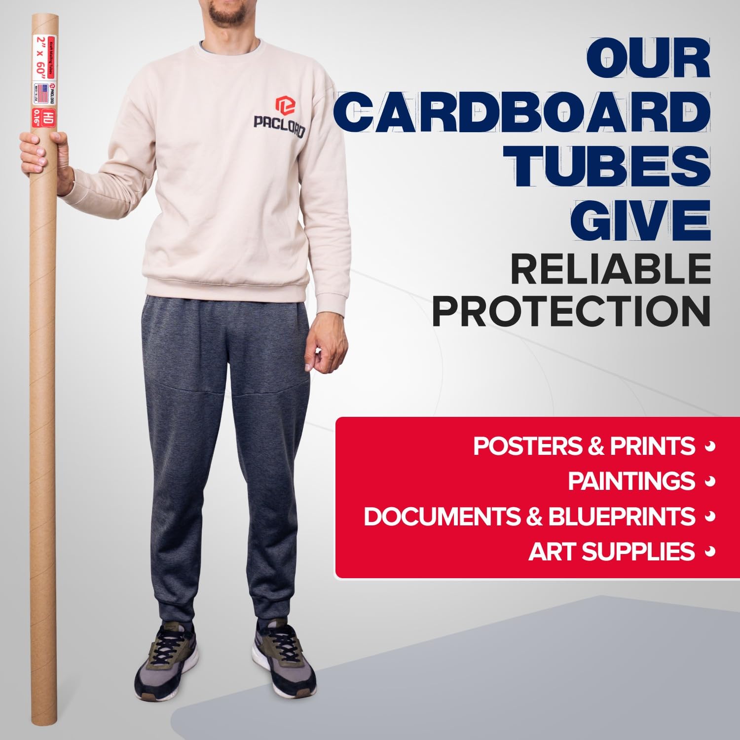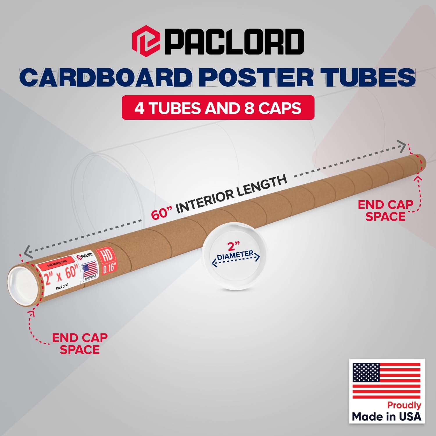 - Heavy-Duty Mailing Tubes: Paclord Reinforced Kraft Paper Mailing Tubes measure 60 inches high and 2 inches in diameter. These cardboard poster tubes are made of heavy-duty 0.16" thick brown kraft cardboard, 2x thicker than standard tubes. Designed to provide superior crush resistance for secure and reliable mailing