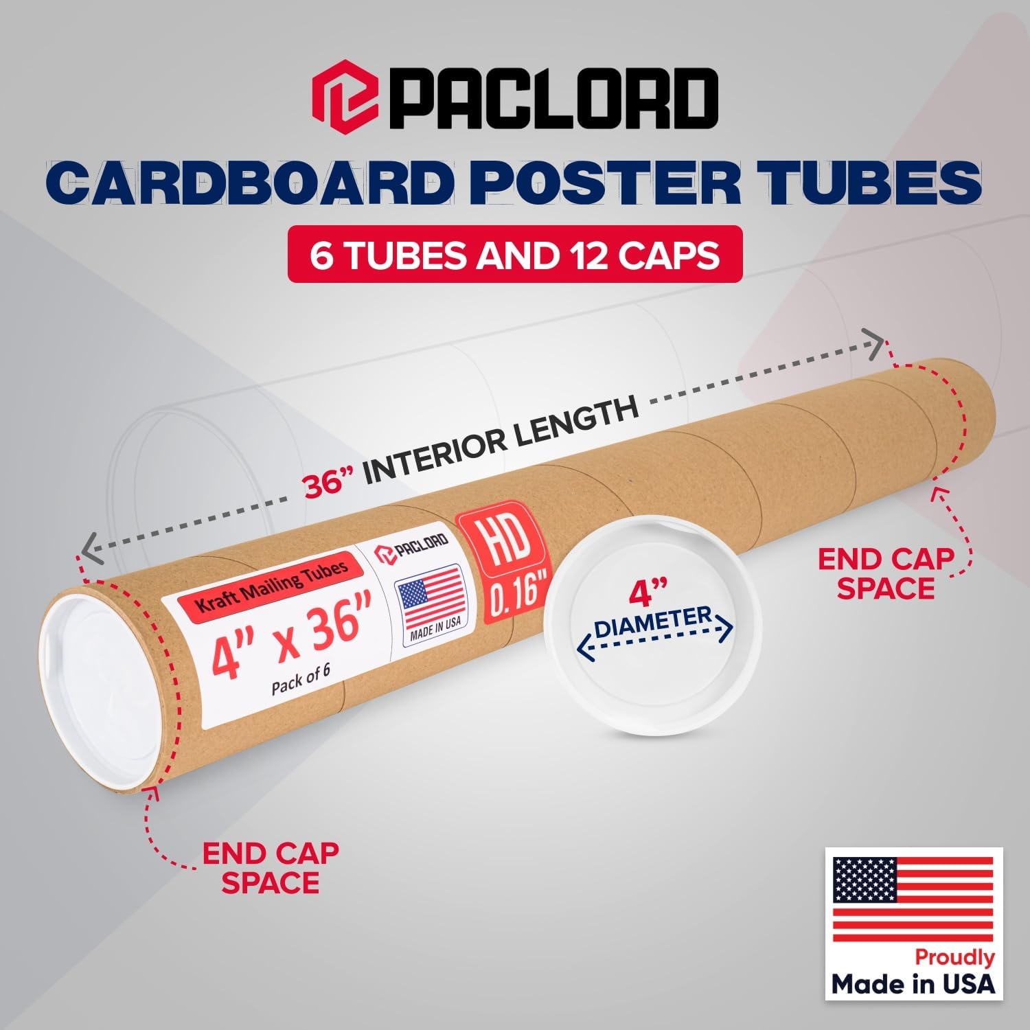 - Heavy-Duty Mailing Tubes: Paclord Reinforced Kraft Paper Mailing Tubes measure 36 inches high and 4 inches in diameter. These cardboard poster tubes are made of heavy-duty 0.16" thick brown kraft cardboard, 2x thicker than standard tubes. Designed to provide superior crush resistance for secure and reliable mailing