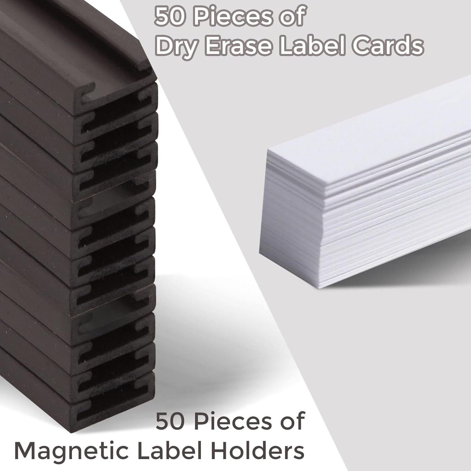 - 【Super Value Pack】 There are 50 pieces of magnetic label holders and 50 pieces of dry erase insert label cards included in 1 set, meet your long-term usage needs. Our magnetic dry erase label is 0.5 x 3 inches.