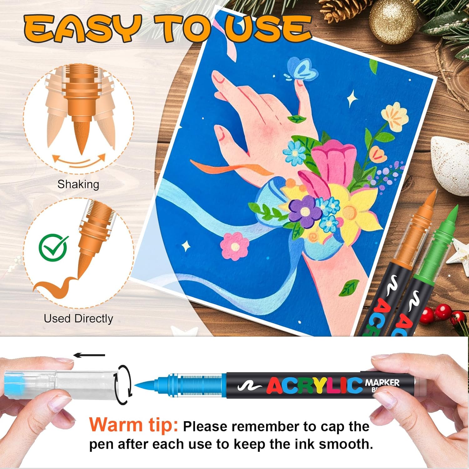 - SAFE, FAST, DURABLE: Featuring water-based, non-toxic ink certified to ASTM D4236 and EN71, our acrylic paint pens dry quickly, resist fading, and deliver waterproof, long-lasting color.