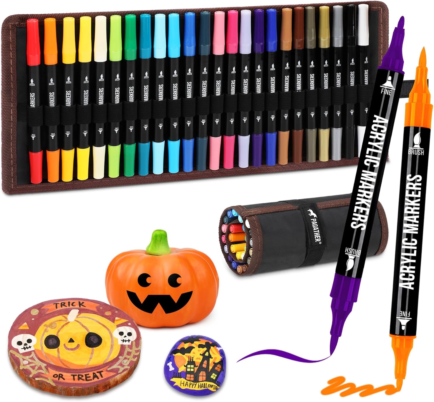 24 Colors Acrylic Paint Markers, Dual Tip with Fine Tip and Brush Tip Pens for Stone, Wood, Calligraphy, Canvas, Ceramic, Metal, Glass, Rock Painting, DIY Crafts Art Supplies Kit