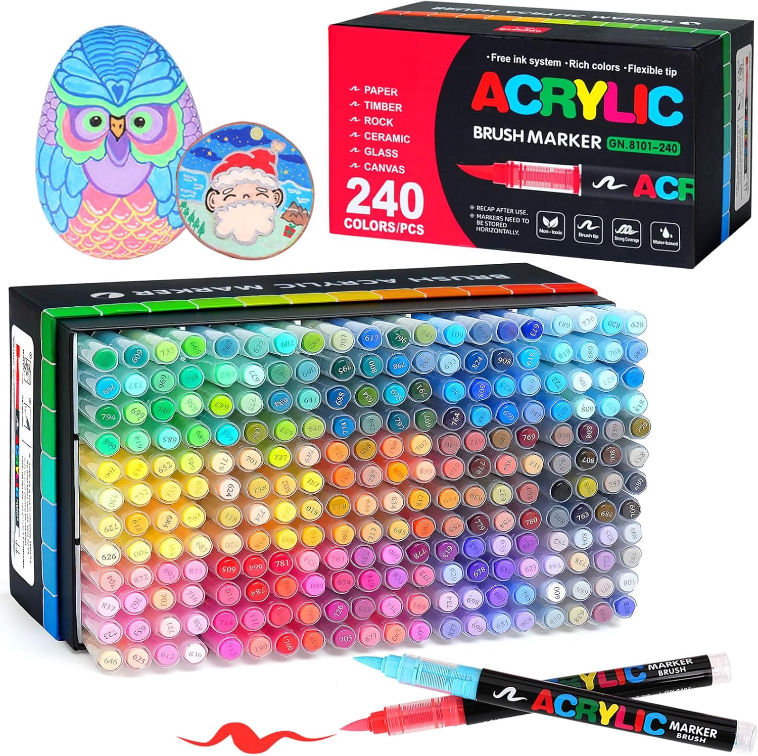 240 Acrylic Paint Markers, Soft Brush Tip Acrylic Markers for Rock Painting, Wood, Stone, Glass, Canvas, Fabric, Ceramic - Brush Tip Water Based Acrylic Markers Pens