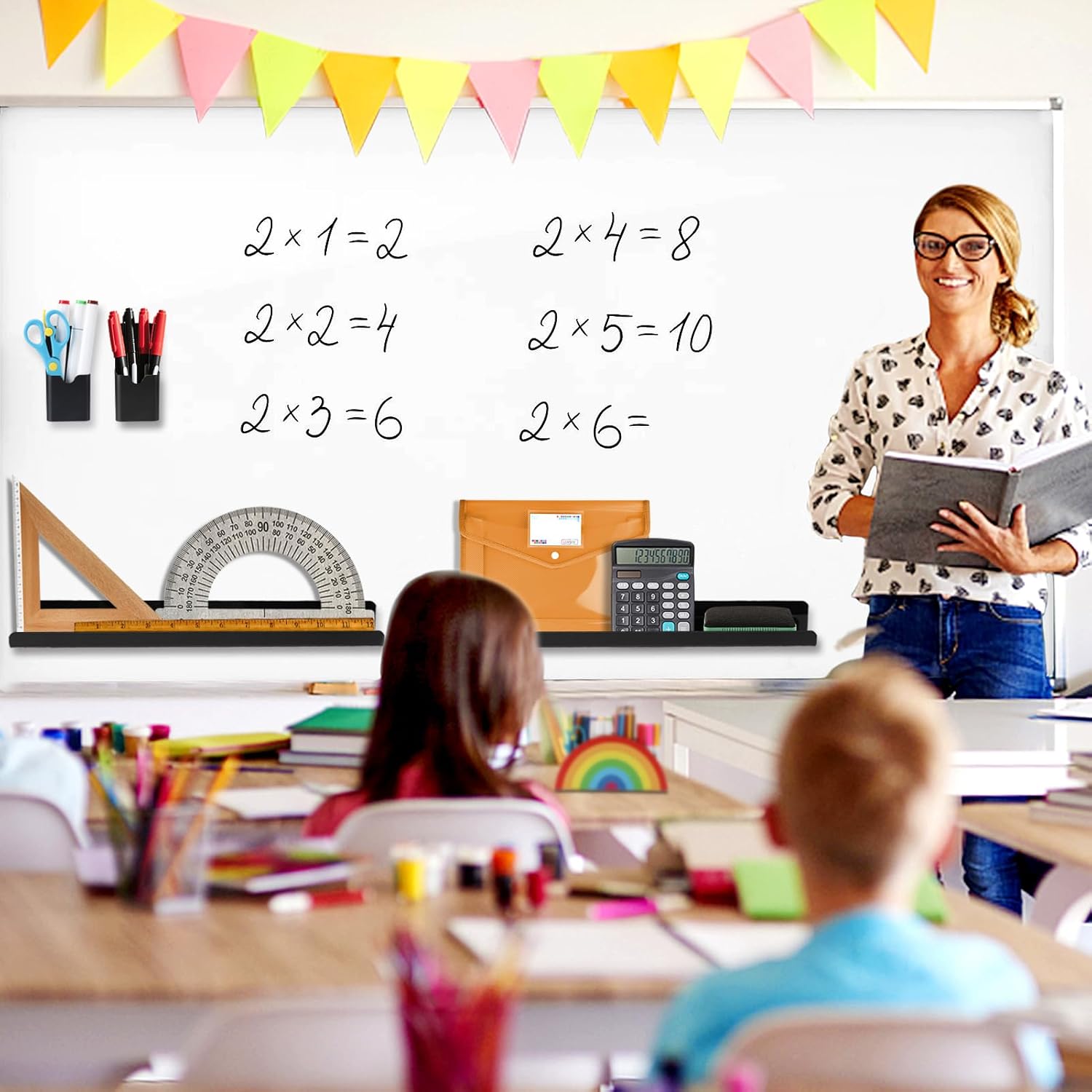 - Ideal Size: The magnetic display shelves measure about 17Ă—2.2Ă—2in, which can hold more books, as well as rulers, board erasers, etc.