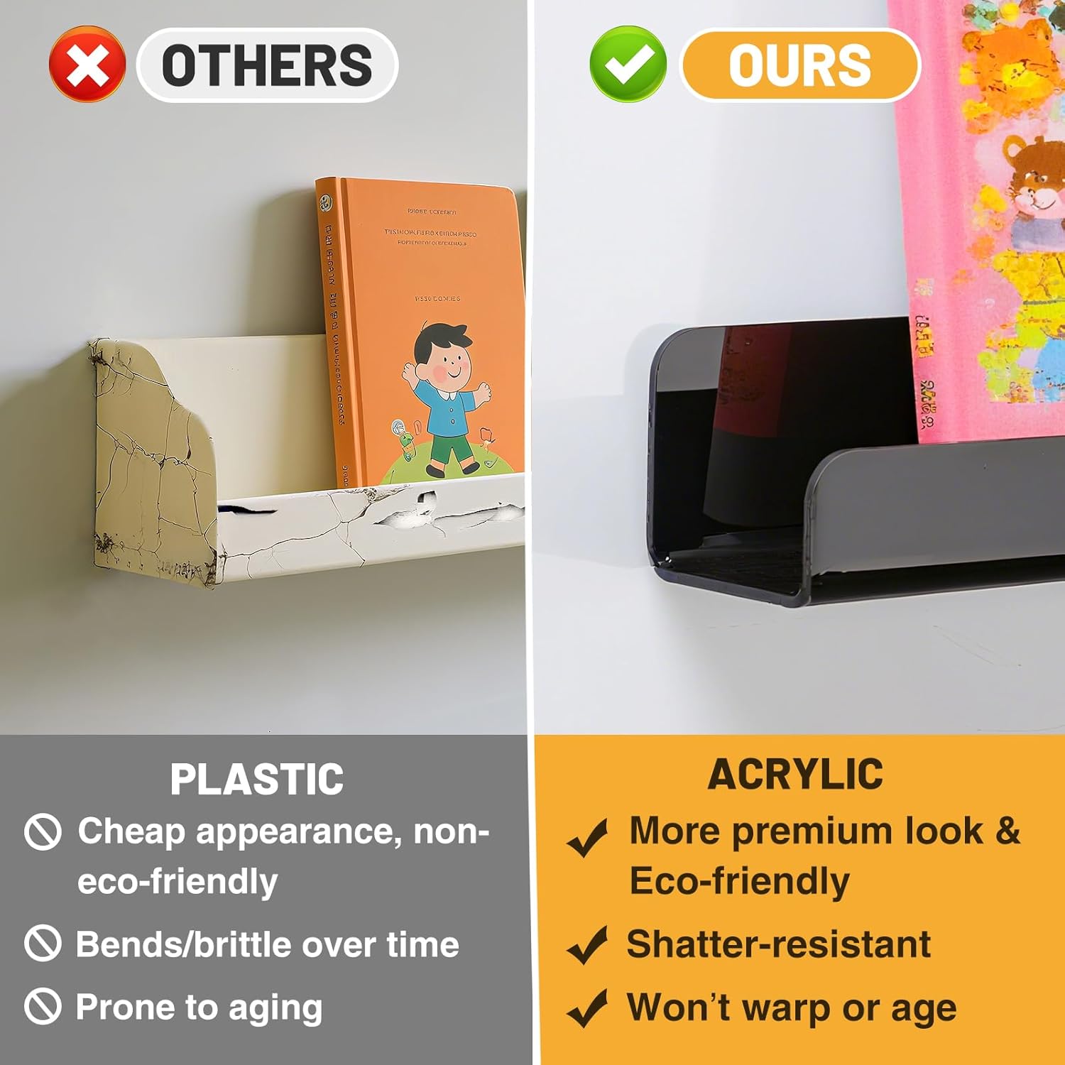 - Premium Material: Made of thickened acrylic, they're lightweight yet sturdy and easy to clean, making them a durable choice that won't easily break. These acrylic magnetic book shelves are the perfect solution for staying organized in the classroom or at home.