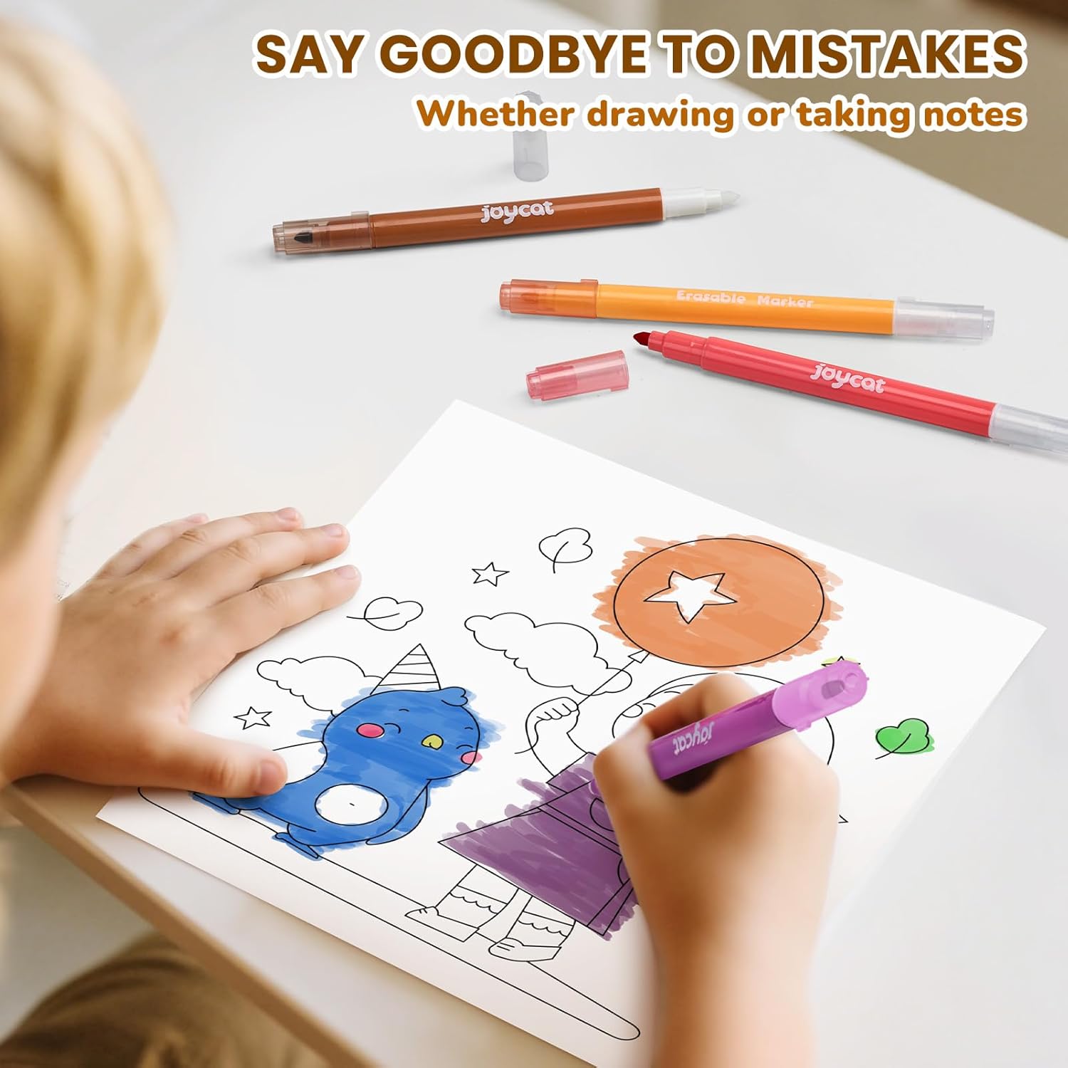 12-Pack Dual Conical Tip Erasable Markers, Water-Based Art Pens - Vibrant Color-Coded Barrels, Anti-Roll Caps, Smooth No Bleed Ink, Ideal Color Changing Magic Pen & Highlighters for Kids & Artists
