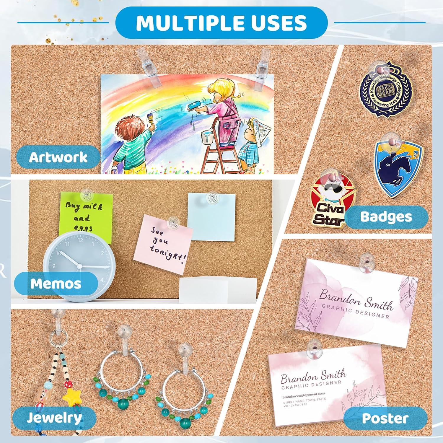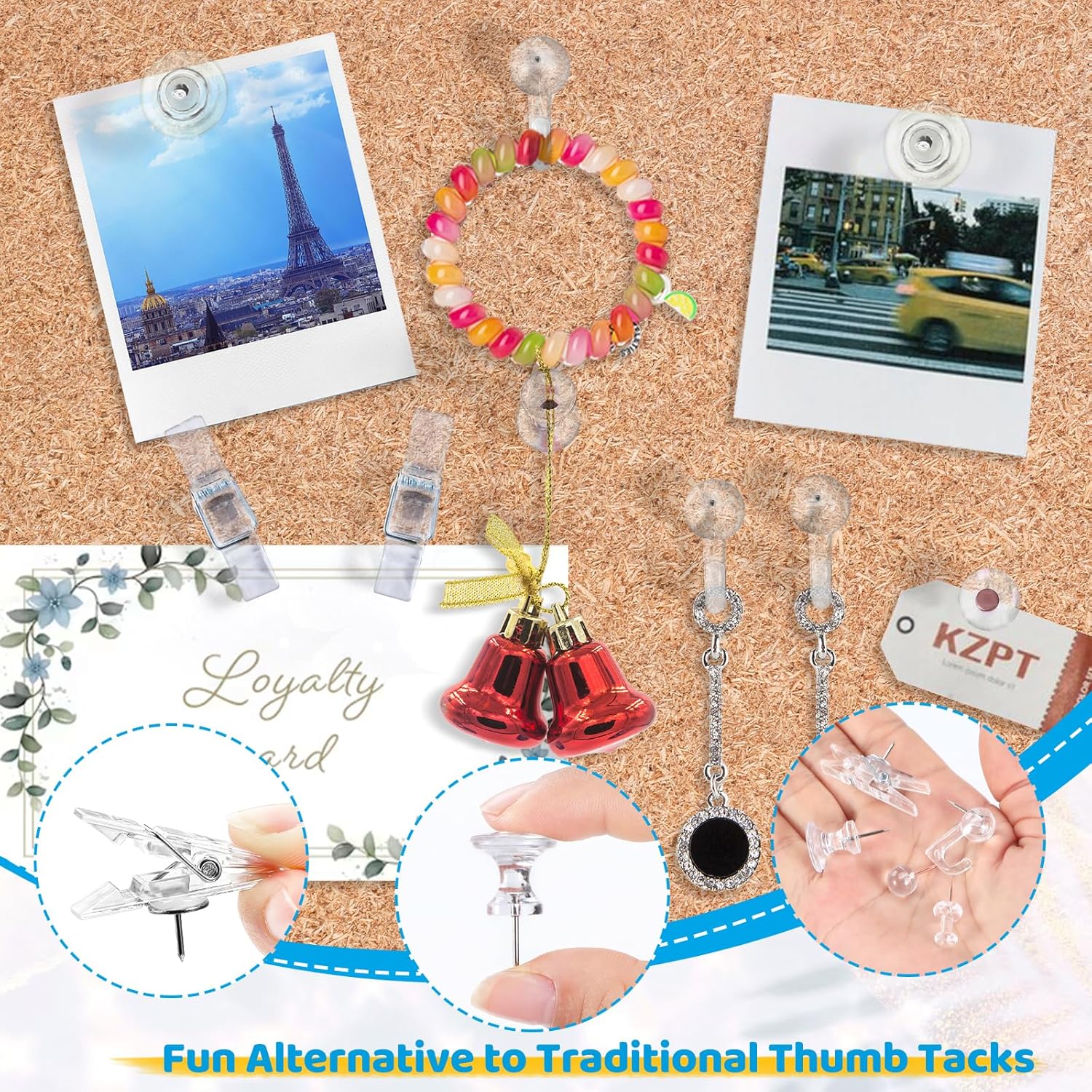 - 【Wide Applications】You can use these push pins to pin notes, posters, photos, memos, maps, postcards, and calendars on cork boards, bulletin boards, foam boards, cardboard, maps, and globes. Making exquisite DIY handmade crafts and hanging ornaments for school, office, home, factories, and exhibitions. Clear design bc the focus is on the photo or drawing not the pin!
