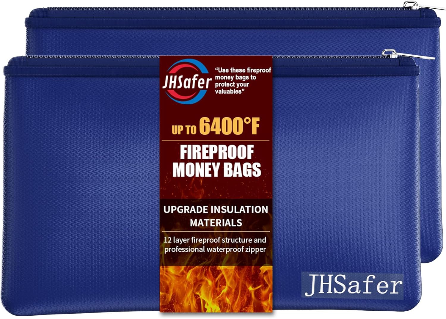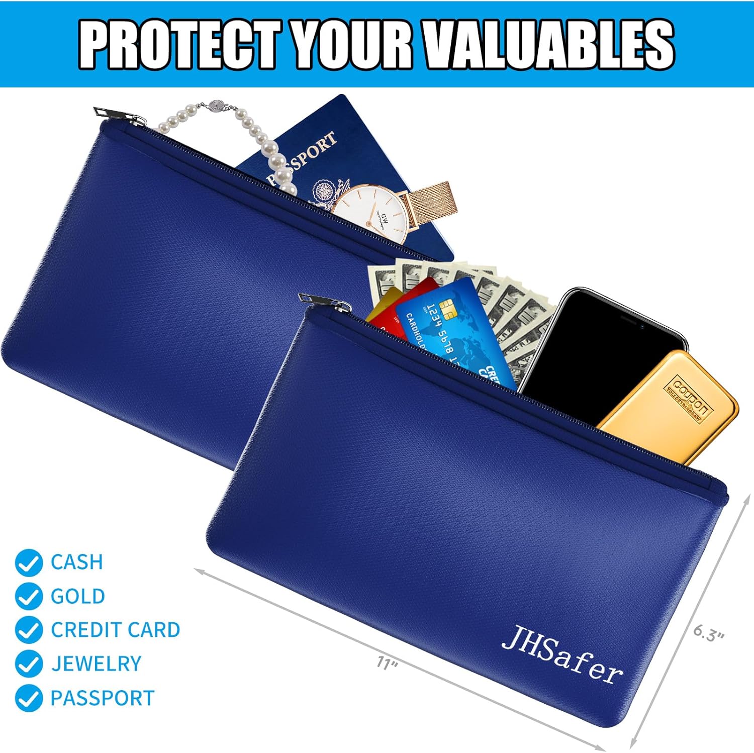 6400℉ Fireproof and Waterproof Money Bags 2pcs with Zipper,11''x6.3'' Fireproof Cash Bag with Zipper,Fireproof Wallet Envelope Safe Pouch Fireproof Bags for Cash Passports Keys Jewellery (Blue)