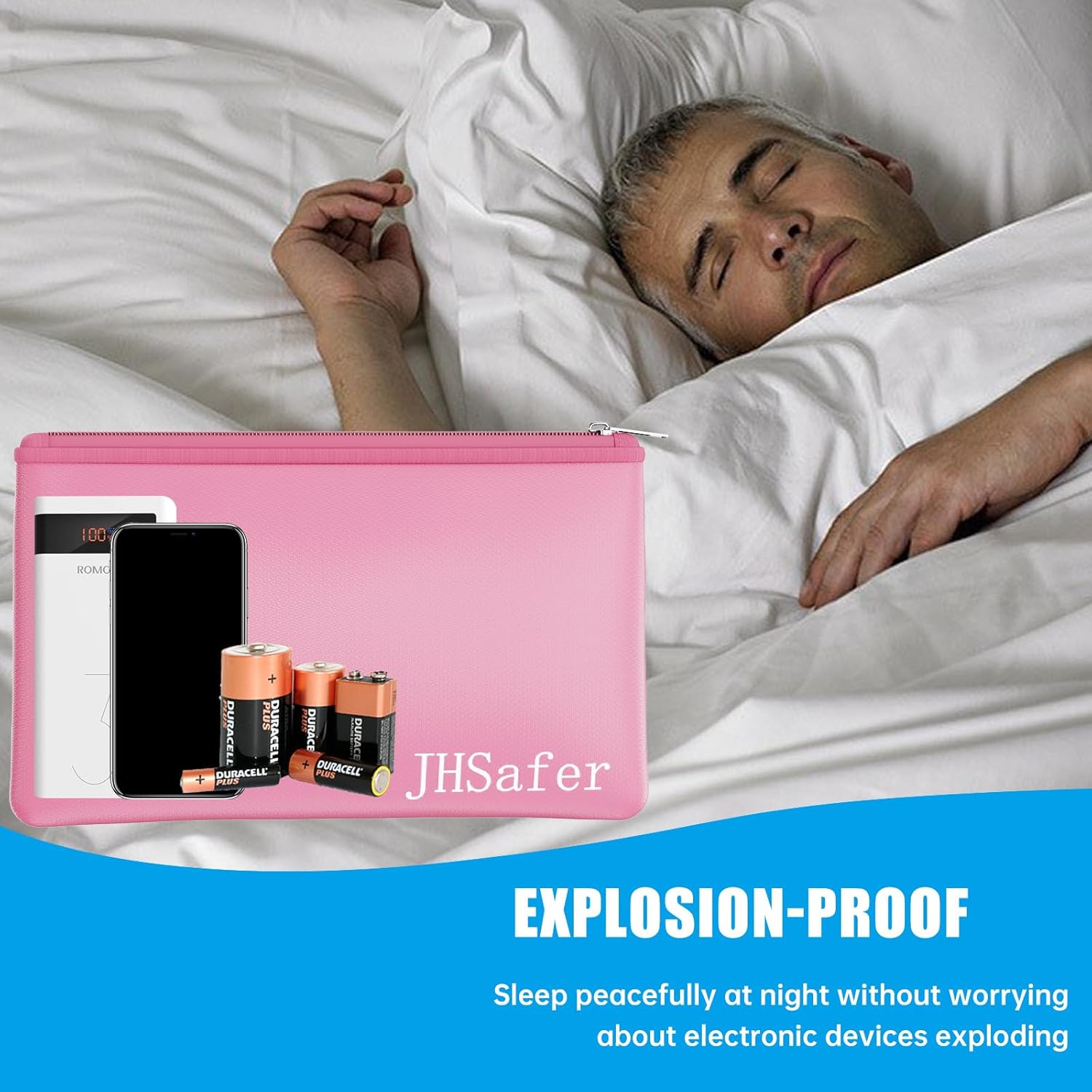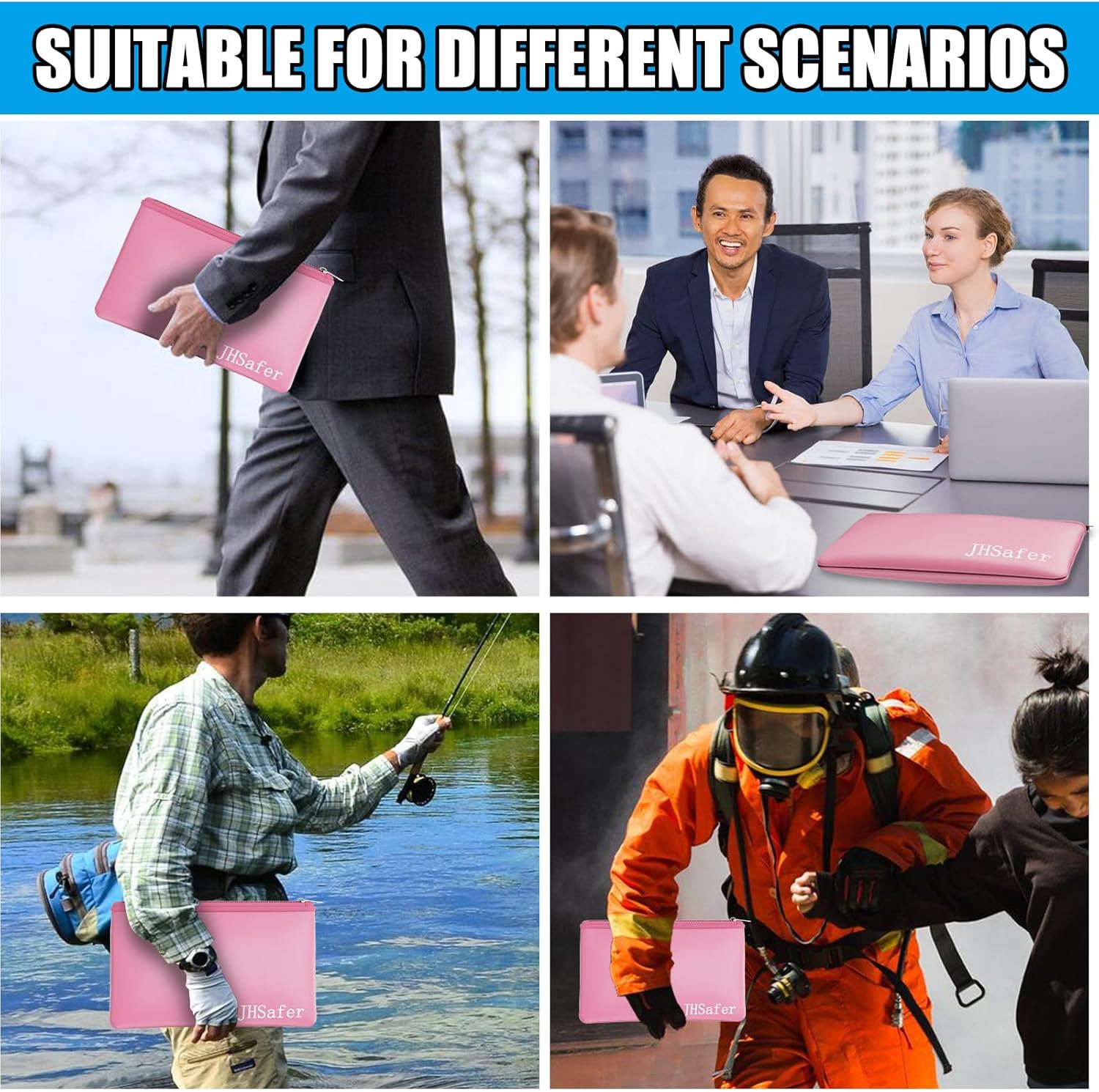6400℉ Fireproof and Waterproof Money Bags 2pcs with Zipper,11''x6.3'' Fireproof Cash Bag with Zipper,Fireproof Wallet Envelope Safe Pouch Fireproof Bags for Cash Passports Keys Jewellery (Pink)