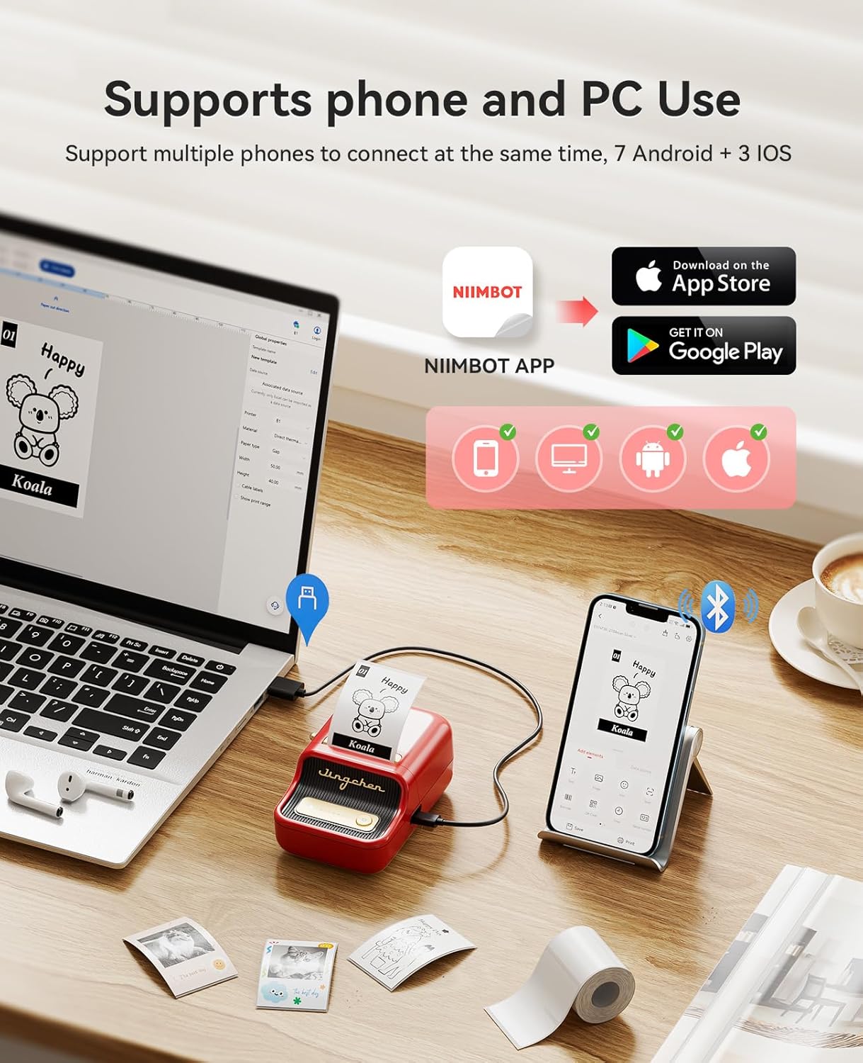 - 【Portable Label Maker】B21 pro label printer with built-in rechargeable battery 1500mAh, 4 hours of charging can last up to work 2 weeks. The B21 pro label maker is compatible with Android and IOS, USB Cable Connection for PC(need to download the NIIMBOT application on computer). it is incompatible with iPad