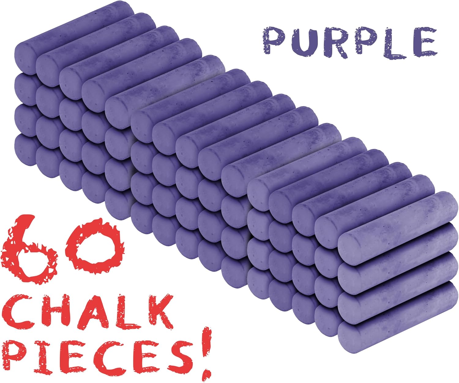 - 60 Count Purple Chalk - 1 Pack: Includes one pack with 60 bold purple sidewalk chalk sticks, perfect for endless hours of outdoor fun. Great for group activities, school projects, or stocking up your art supply shelf with a favorite color.