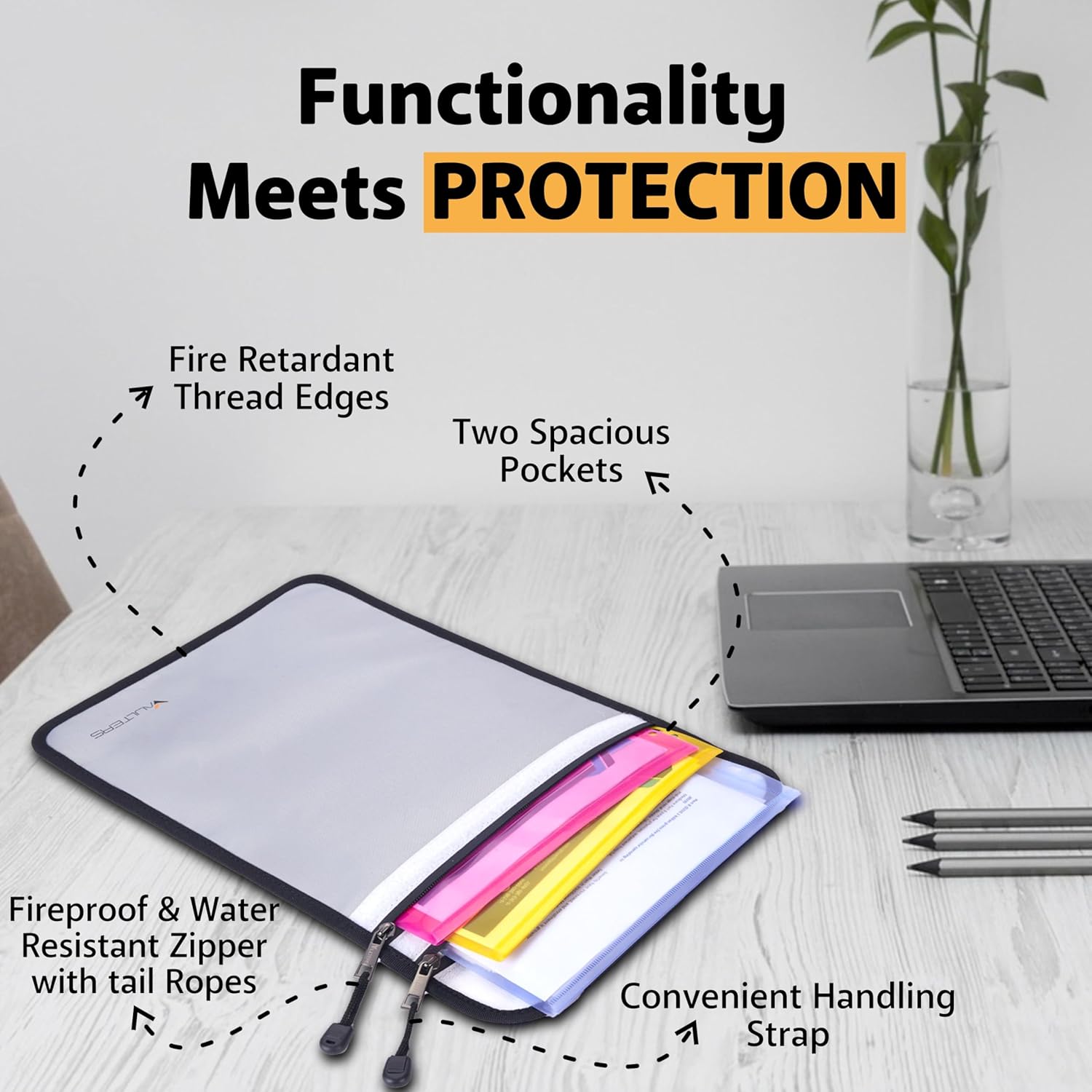 - THERMAL INSULATED FIREPROOF DOCUMENT BAG: 15"x11" - 2000°F Heat Resistant Fireproof Bag with Dual Pockets & Zipper, Silicone-Coated & Waterproof Document Bag for Cash, Passport, Valuables & Legal Files