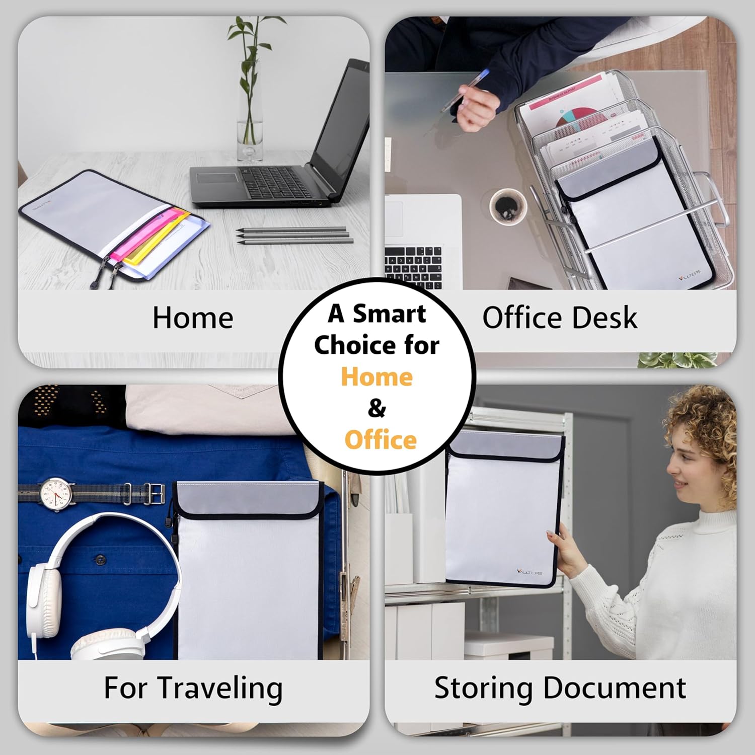 - HIGH-VISIBILITY DESIGN & LARGE-CAPACITY STORAGE: The built-in reflective strip helps you quickly locate your fireproof document bag with lock in low light or during nighttime evacuations. With a spacious 15"x11" size, it easily fits A4 legal documents, passports, cash, jewelry, laptops, photos, and more. Whether at home or on the go, the side carry handle makes it easy to grab and evacuate with your most important items.