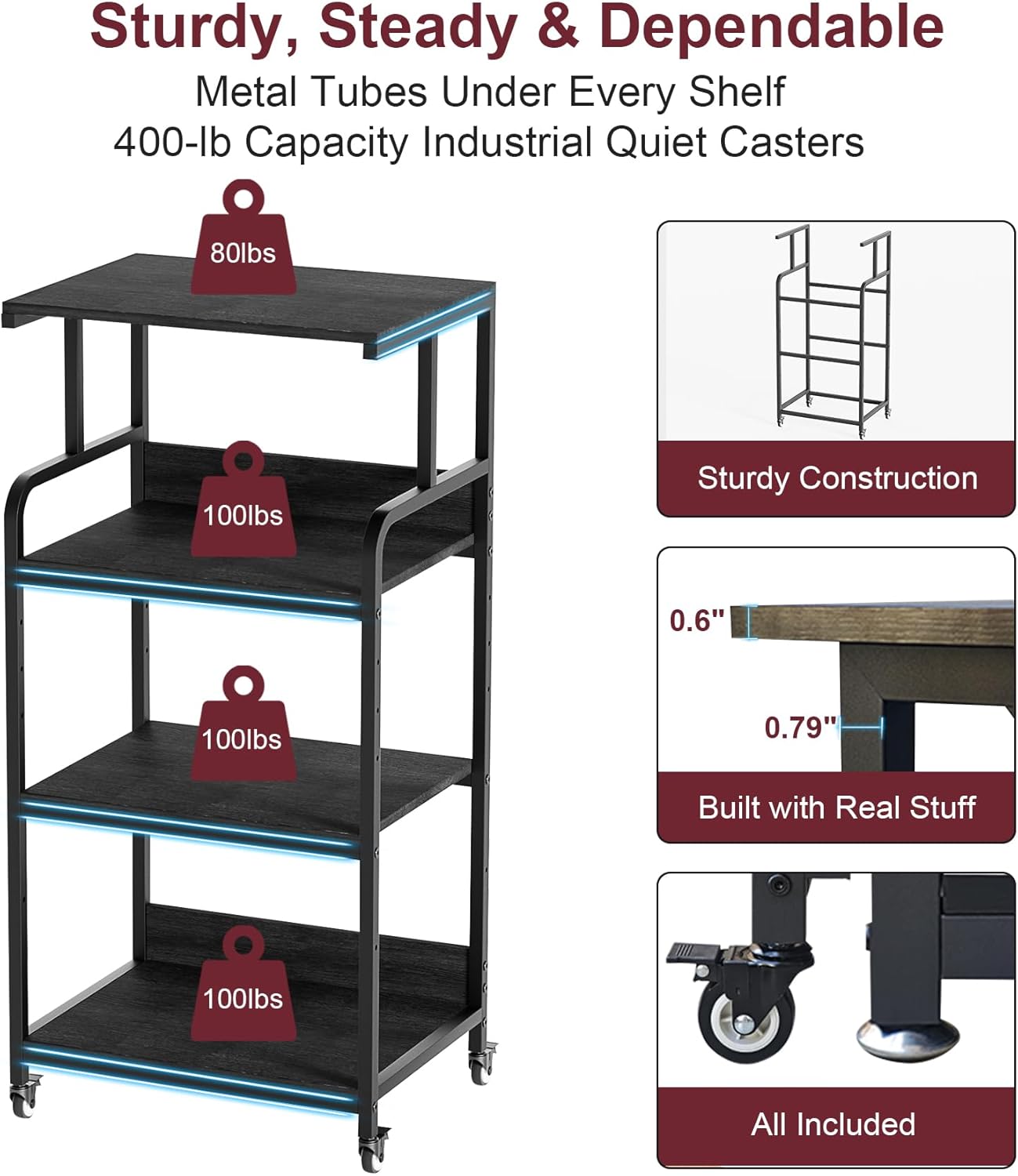 - 【Locking Wheels & Feet】Both adjustable feet and heavy-duty wheels (instead of plastic ones) are included. Use the feet for stationary placement, or attach the wheels to glide it around. Plus, 2 of the 4 wheels are lockable.