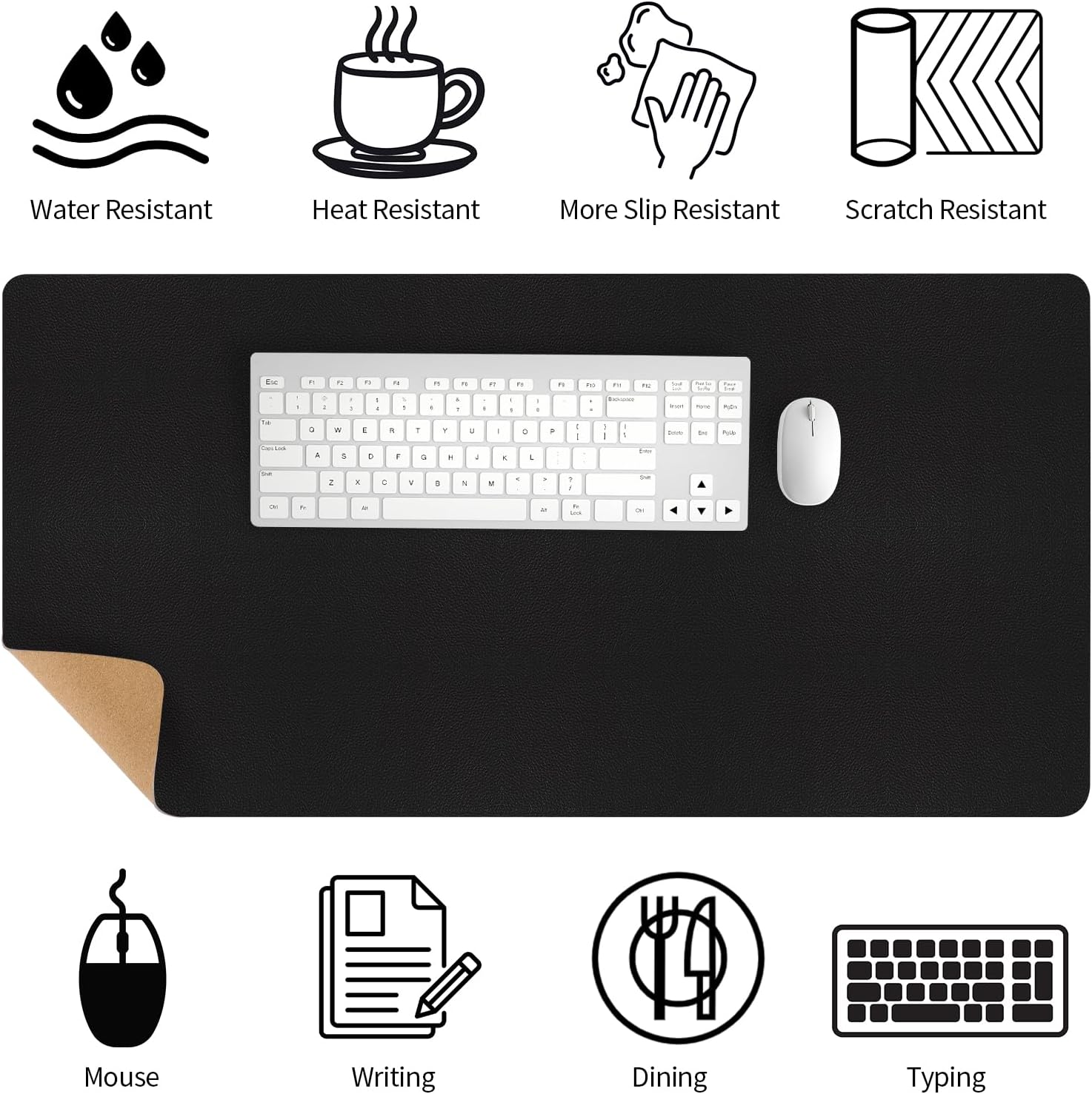 - 【New Design】This large desk mat made of faux leather top and cork base, gives you a whole new experience of using it! It can be used as a desk mat on both sides. Although it is not a real wood texture, the using experience is similar to wood. If the back side is facing up, it's like putting a piece of wood on your desktop.
