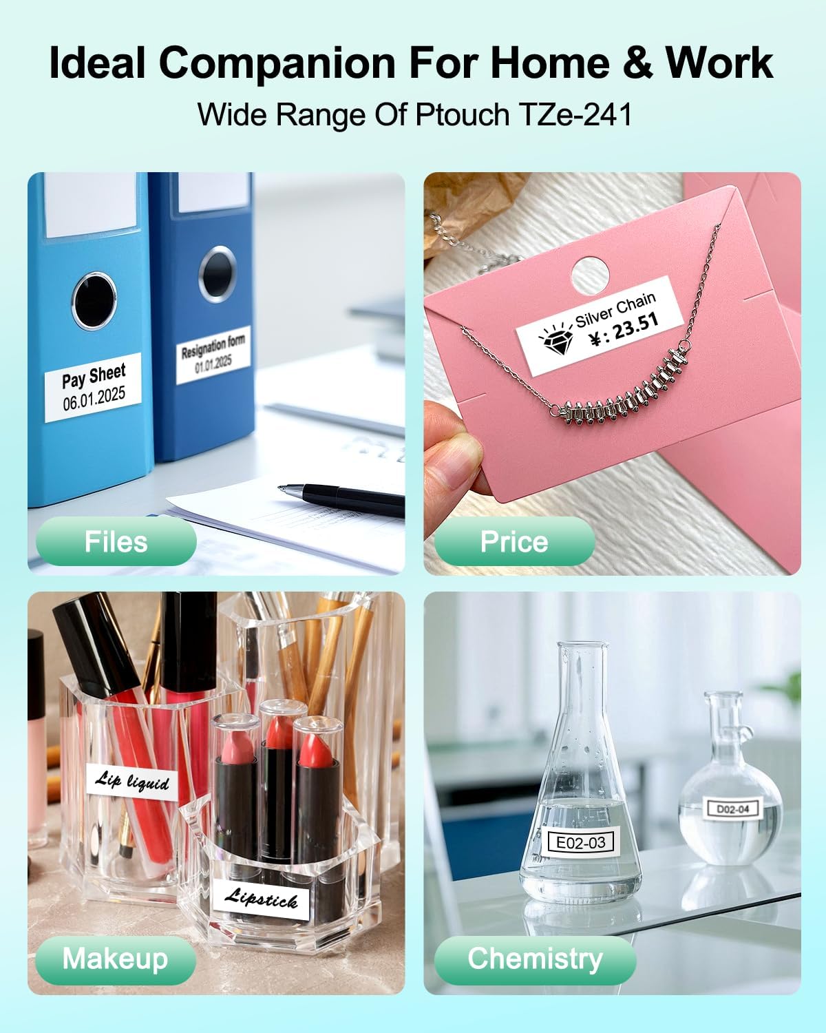 - Package: 4 x TZe-241 TZe tape 18mm 0.7 replacement for Brother P Touch label tape 18mm TZe-241(TZe231 TZ241 TZ-241), 3/4inch x 26.2feet (18mm x 8m) for each tze-241 label tape, black on white.