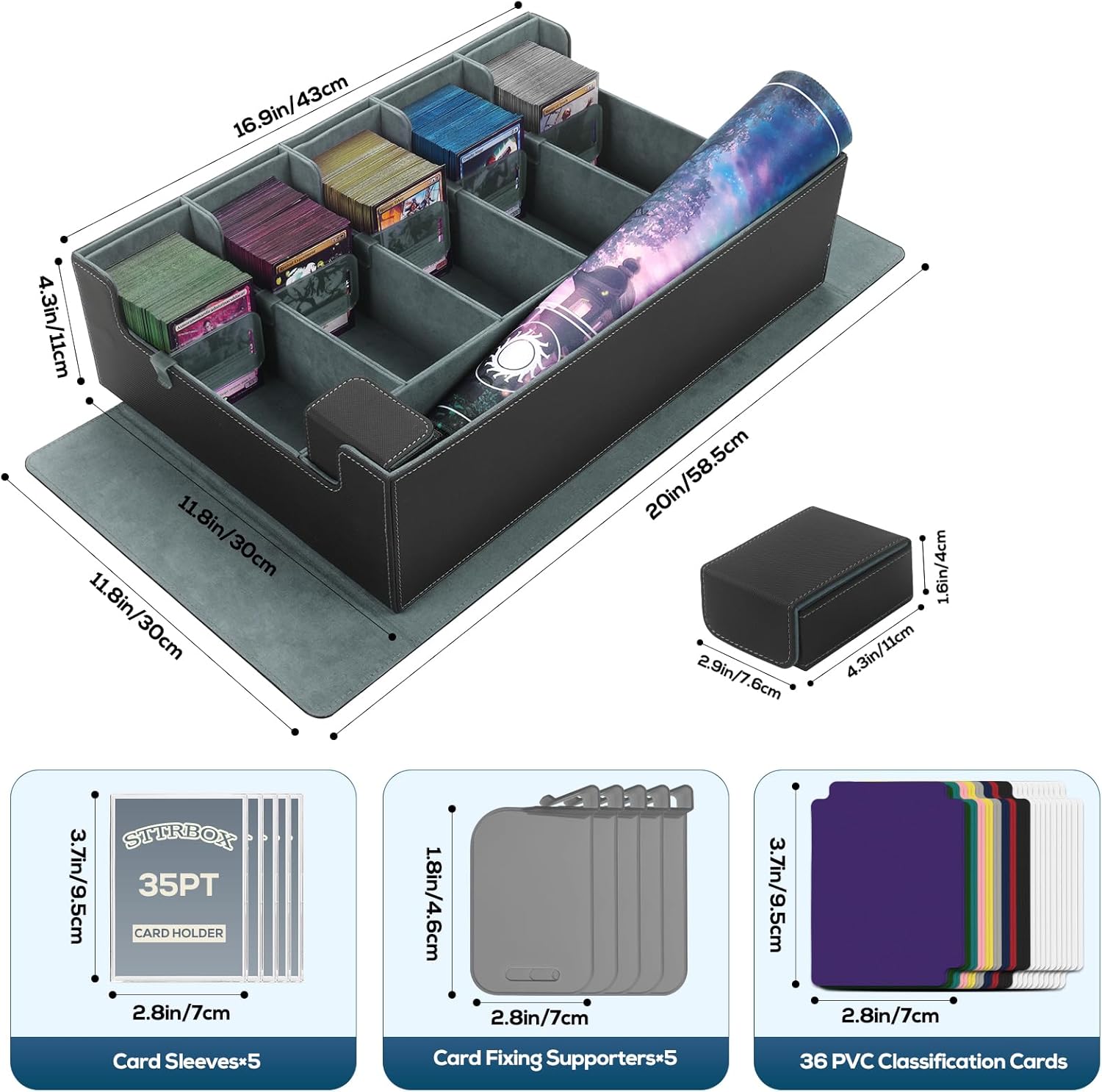 - 【Customized for Professional Gamers】- The STTRBOX MTG Commander Display Deck Box is designed for Commander players. Designed to hold 3900+ cards in 5 rows, the card box is ideal for organizing Commander decks as the card box design reserves space for players to place their personalized play mats. Each row of the card box features a side window for your Commander or avatar to quickly and easily identify each deck in the box.