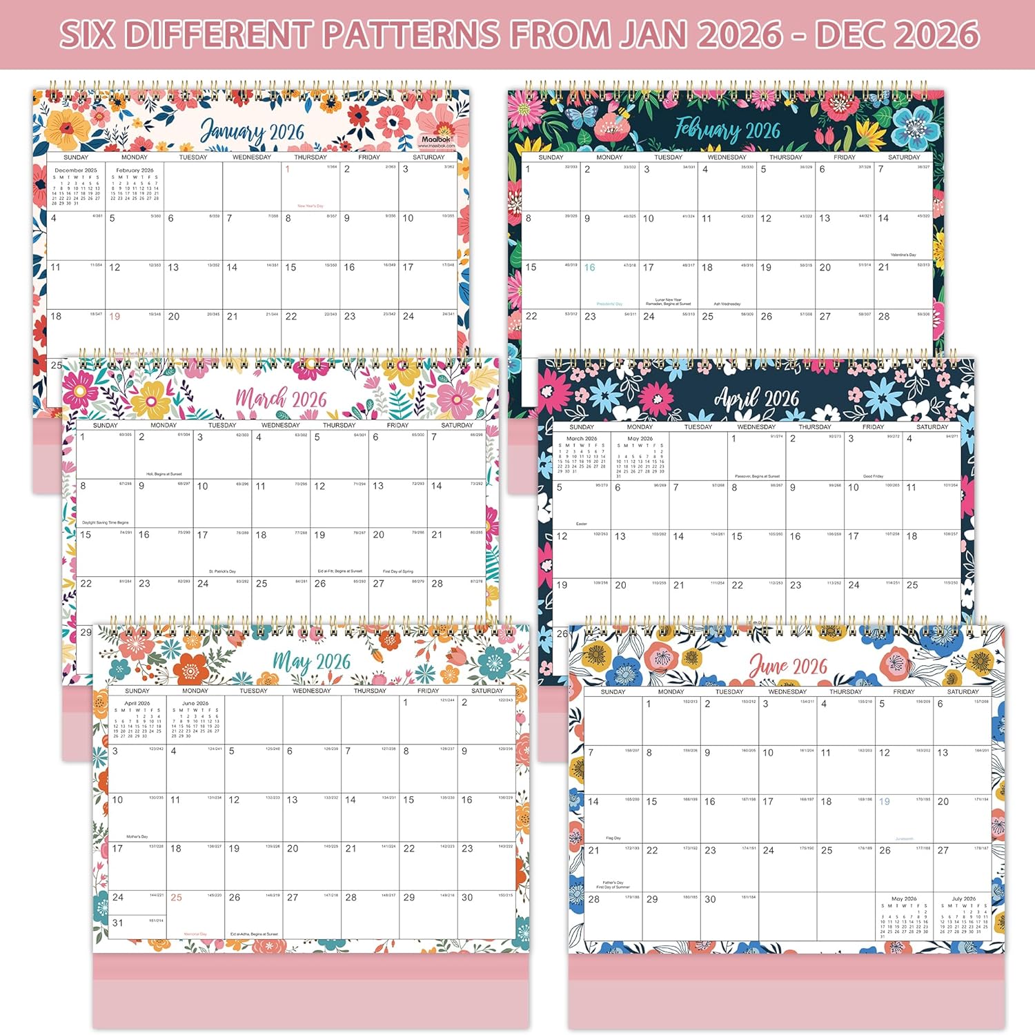 - ๐ผ BEAUTIFUL FLOWERS DECORATION ๏ผ TOOL - This standing flip 2026 desk calendar has 6 vivid floral patterns which will help to organize your month in a different vibrant way. This 2026 calendar is a perfect tool to write down your notes, ideas, meetings, appointments to improve your time management skill and being productive!