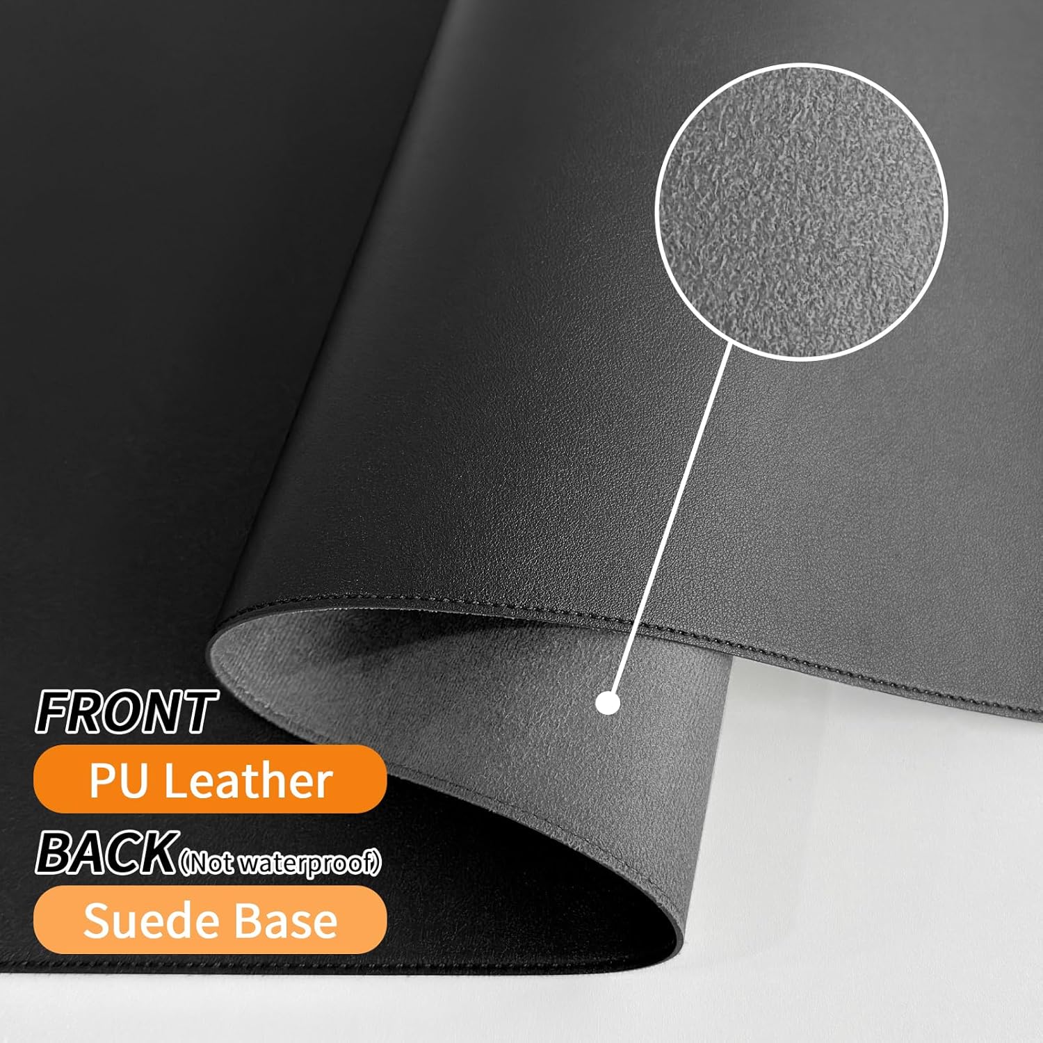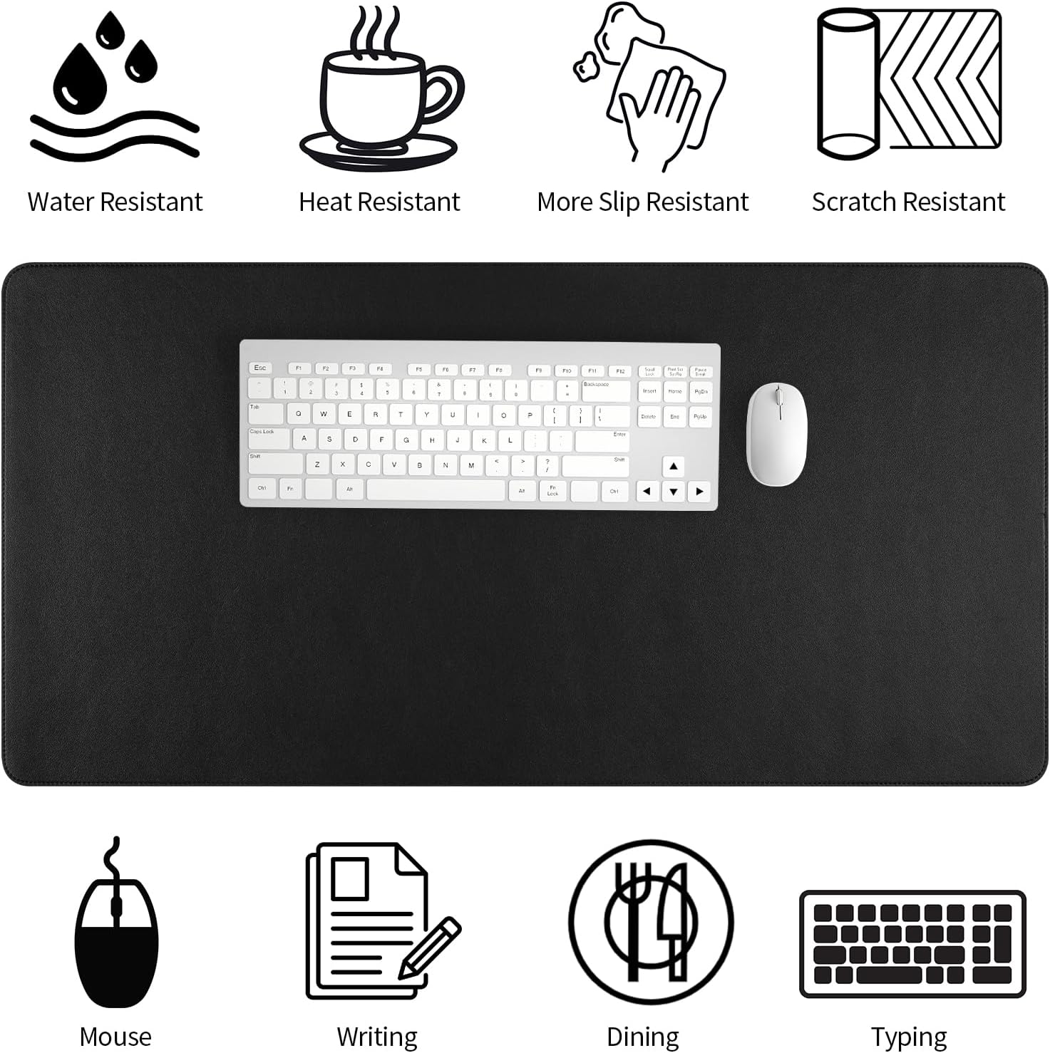 - 【Waterproof & Easy to Clean】The PU leather material keyboard mat is waterproof and heat resistant, easy to clean. It can perfectly protect your desktop from drinks, ink and other liquids. For cleaning, just wipe its surface stains with a damp cloth. Please note that its suede backing is not waterproof!