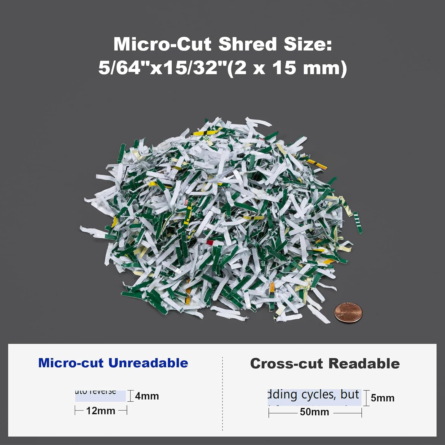 - 【P5 High-Security Shredding】Protect sensitive data with P5-level security, reducing documents to confetti-sized 2x15mm particles (5/64" x 19/32")—virtually unreadable and compliant with strict privacy standards.