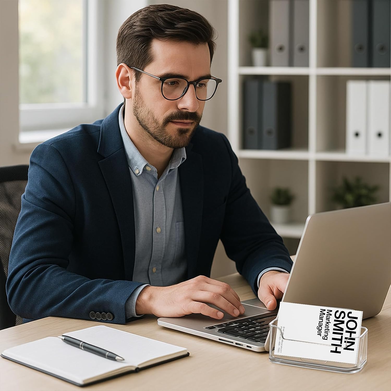 - 【Spacious Design】The size of this business card display is 9.7x3.5x5cm (3.8x1.4x1.97inches), which can accommodate 30-50 normal business cards, suitable for storing a variety of business cards or multiple business cards.
