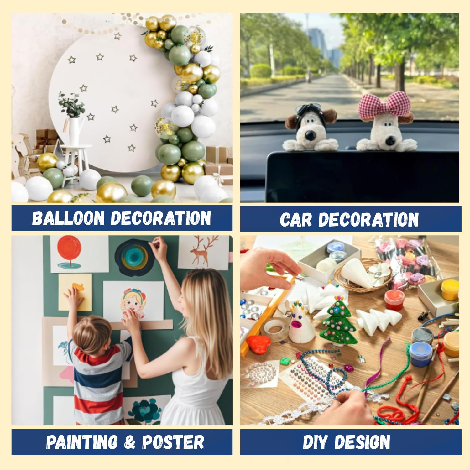 - ๐๐๐ซ๐ฌ๐๐ญ๐ข๐ฅ๐ ๐๐ฉ๐ฉ๐ฅ๐ข๐๐๐ญ๐ข๐จ๐ง๐ฌ ๐๐จ๐ซ ๐๐ฏ๐๐ซ๐ฒ ๐๐๐๐: ZuBiya sticky tack (tape dots) is perfect for securing posters, photos(photo safe tape, picture frame stickers), scrapbooks, party decorations (balloon stickers, balloon tape), and other DIY crafts (double sided tape for crafts). It is suitable for use at home, in the office, or in school projects, providing a convenient solution for various needs