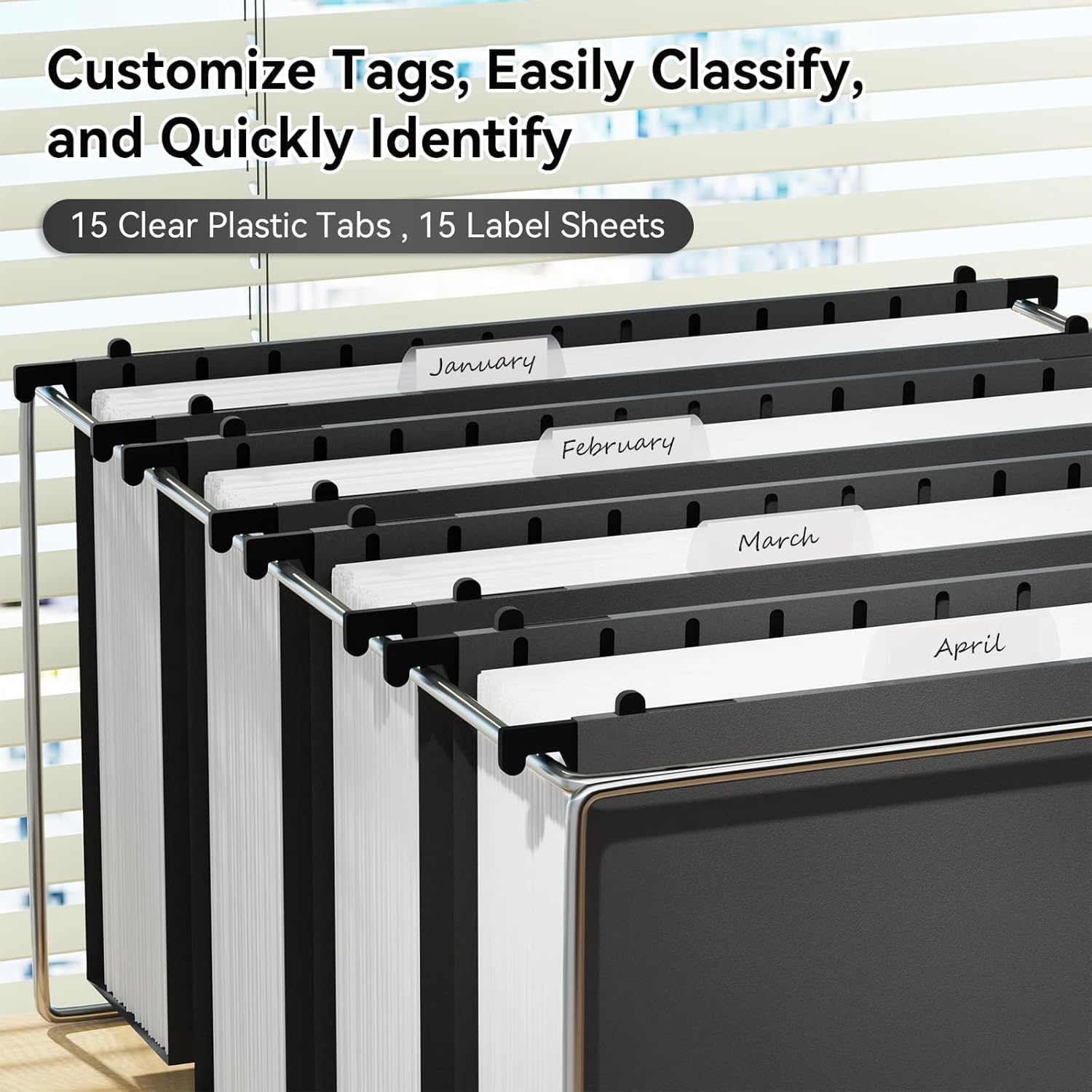 - 【Efficient Organizer】: ANSOOK black file folders comes with 15 clear labels and 15 label papers, allowing for customized filing and easy categorization according to your needs. The bottom support plate adds stability, ensuring your files stay organized in drawers and file cabinets