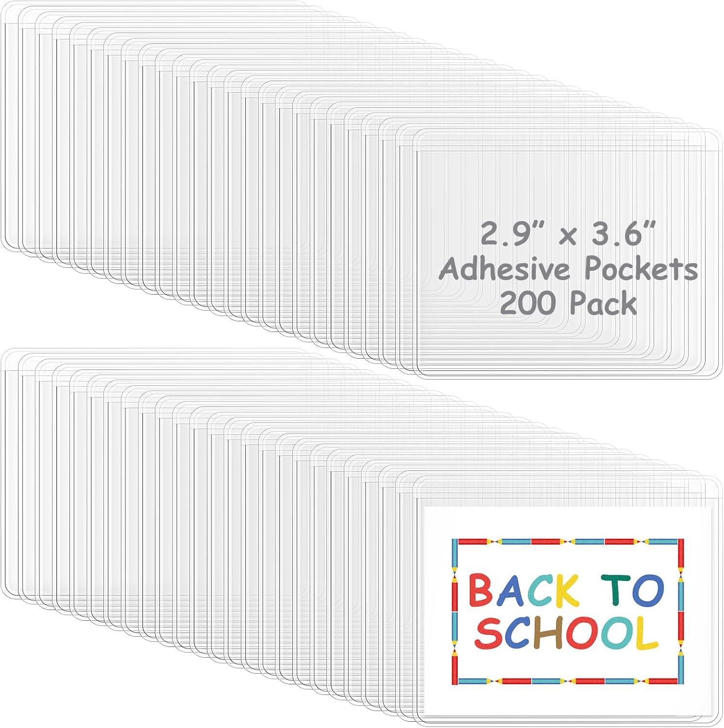 Jeyiour 200 Pcs Label Holders Adhesive Nameplate Pockets Storage Bin Labels Index Card Holder Shelf Plastic Peel Stick for Classroom Supermarket Bookshelf Library Student Box Drawer (2.9 x 3.6 Inch)