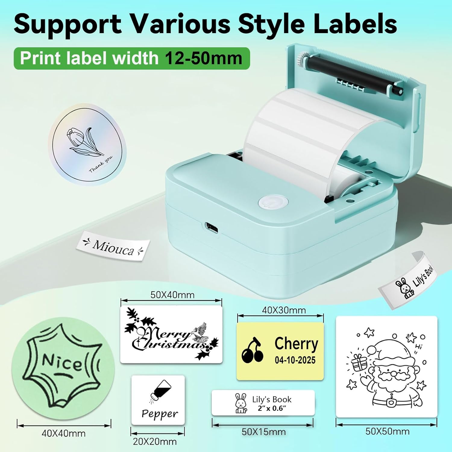 - Thermal Label Printer for Effortless Organization – Includes 2 rolls BPA-free starter label paper (50mmx15mm label paper + 50mmx3.5metre continuous paper) resistant to water, oil, and scratches. Perfect for kitchen jars, food label, closet organization, toy organization, kid’s name label, luggage tags, daily reminder, office file. Whether you’re organizing your pantry, prepping for school, or managing office supplies, this label maker machine with tape is your ultimate tool for turning chaos into order.