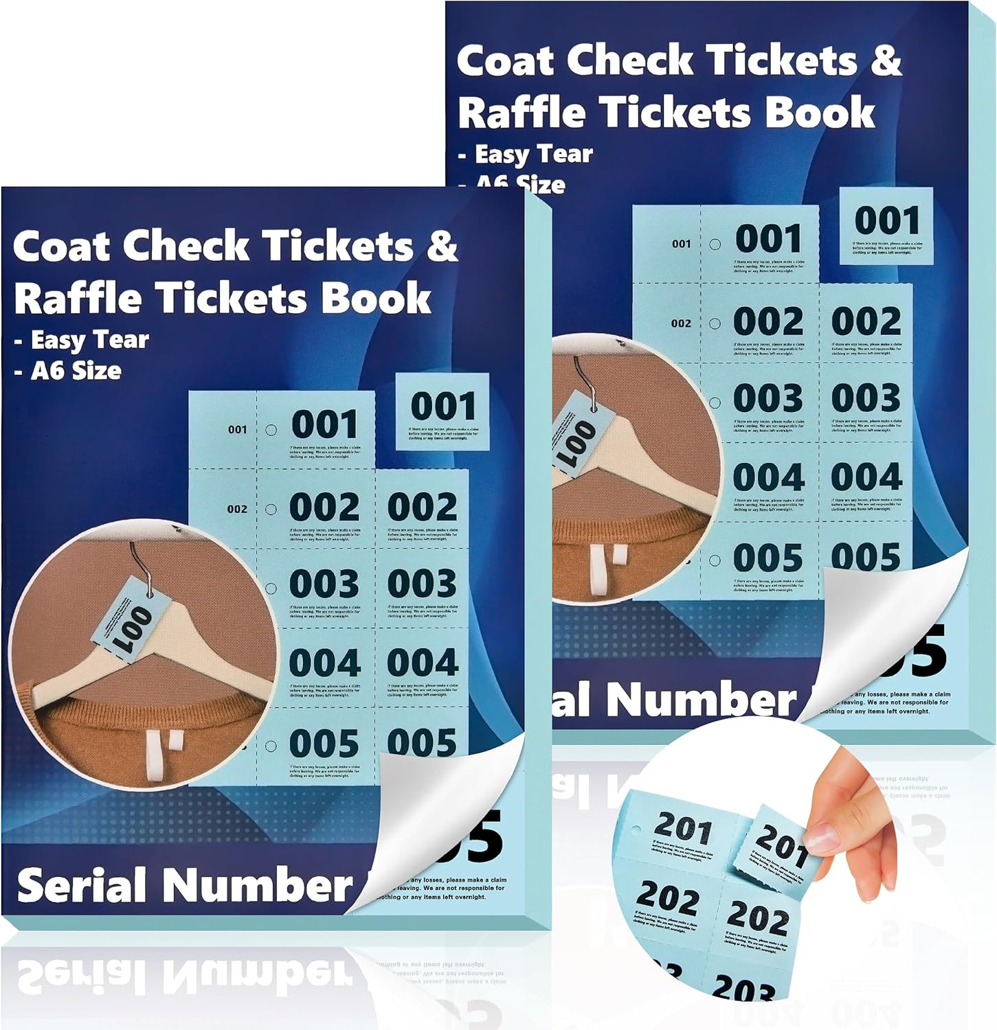 1000 Pcs Coat Check Tickets 2 Part Book Bulk (2 Pack of 1-500) 5.8x4.2 Inch A6 Paper Coat Room Tags Raffle Tickets Coat Check Tags with Hole for Cloakroom Storage or Event Raffle Draws (Blue) (2)