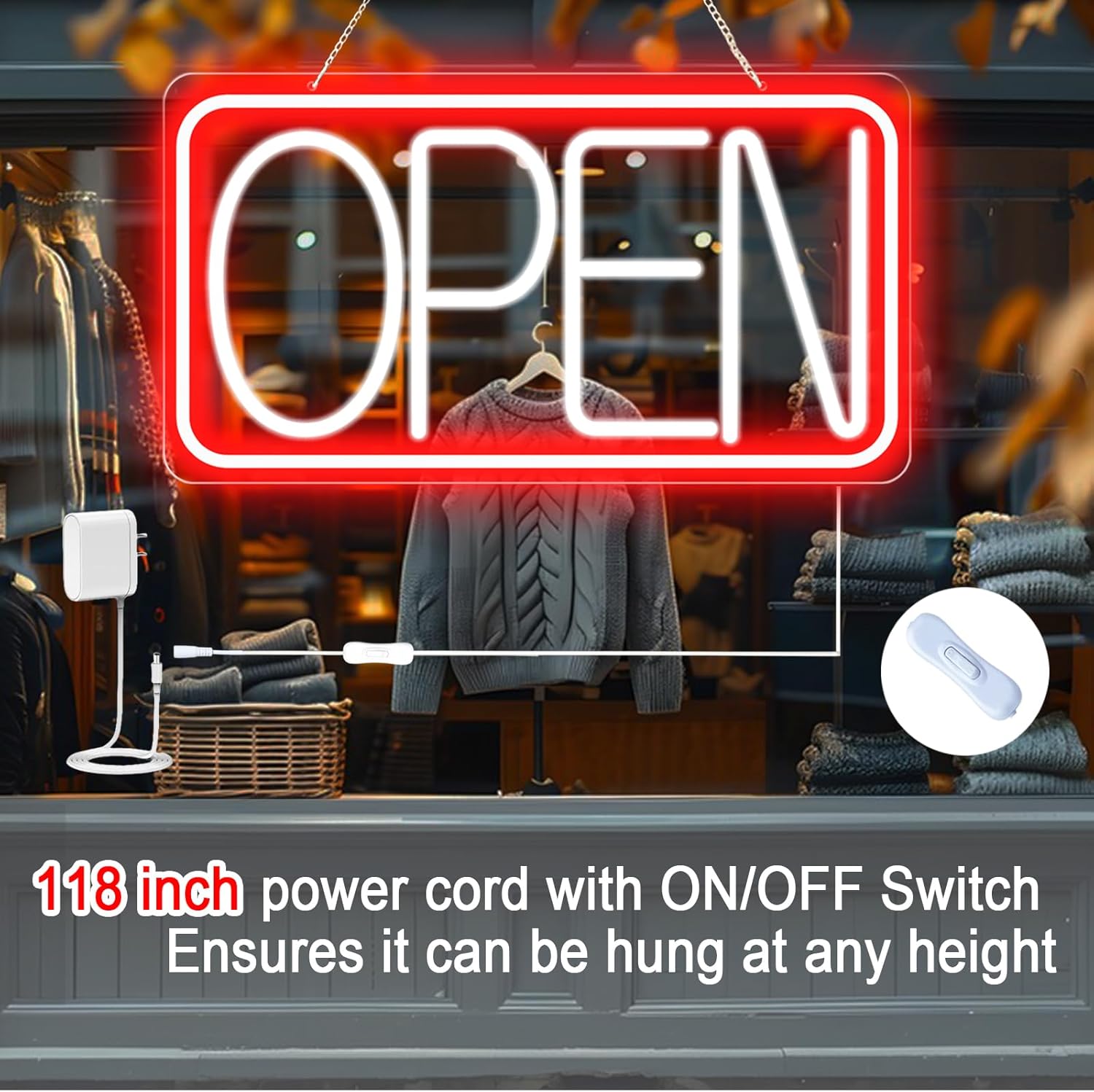 16.5" X 9" Led Neon Open Signs for Business Ultra Bright Plug In Electric Light Up Open Signs with ON/OFF Switch and 12V/2A AC Adapter for Storefront Window Bar Salon Coffee Stores (Red/White)