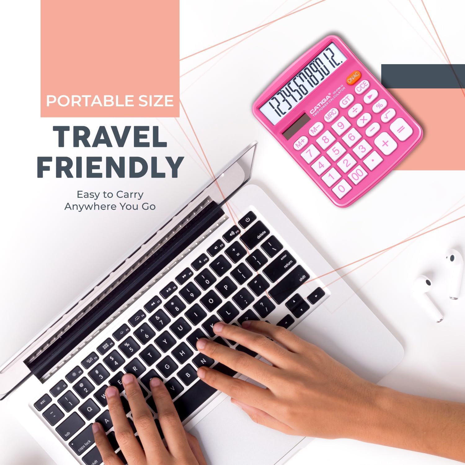CATIGA Desktop Calculator (2 Pack) 12 Digit with Large LCD Display and Sensitive Button, Solar and Battery Dual Power, Standard Function for Office, Home, School, CD-2786 (Blue/Pink)